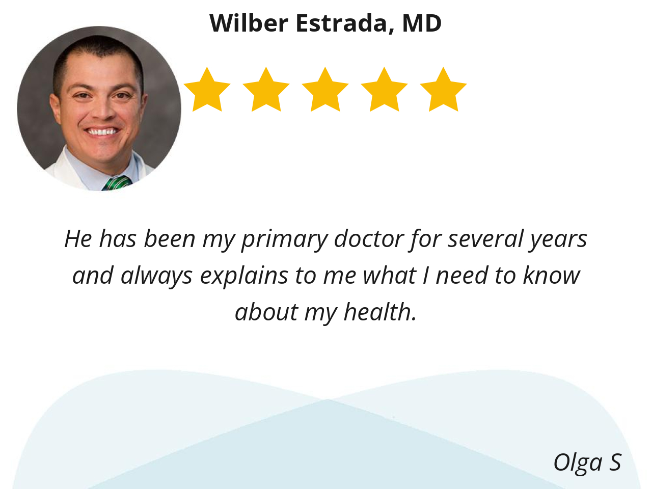 He has been my primary doctor for several years and always explains to me what I need to know about my health.