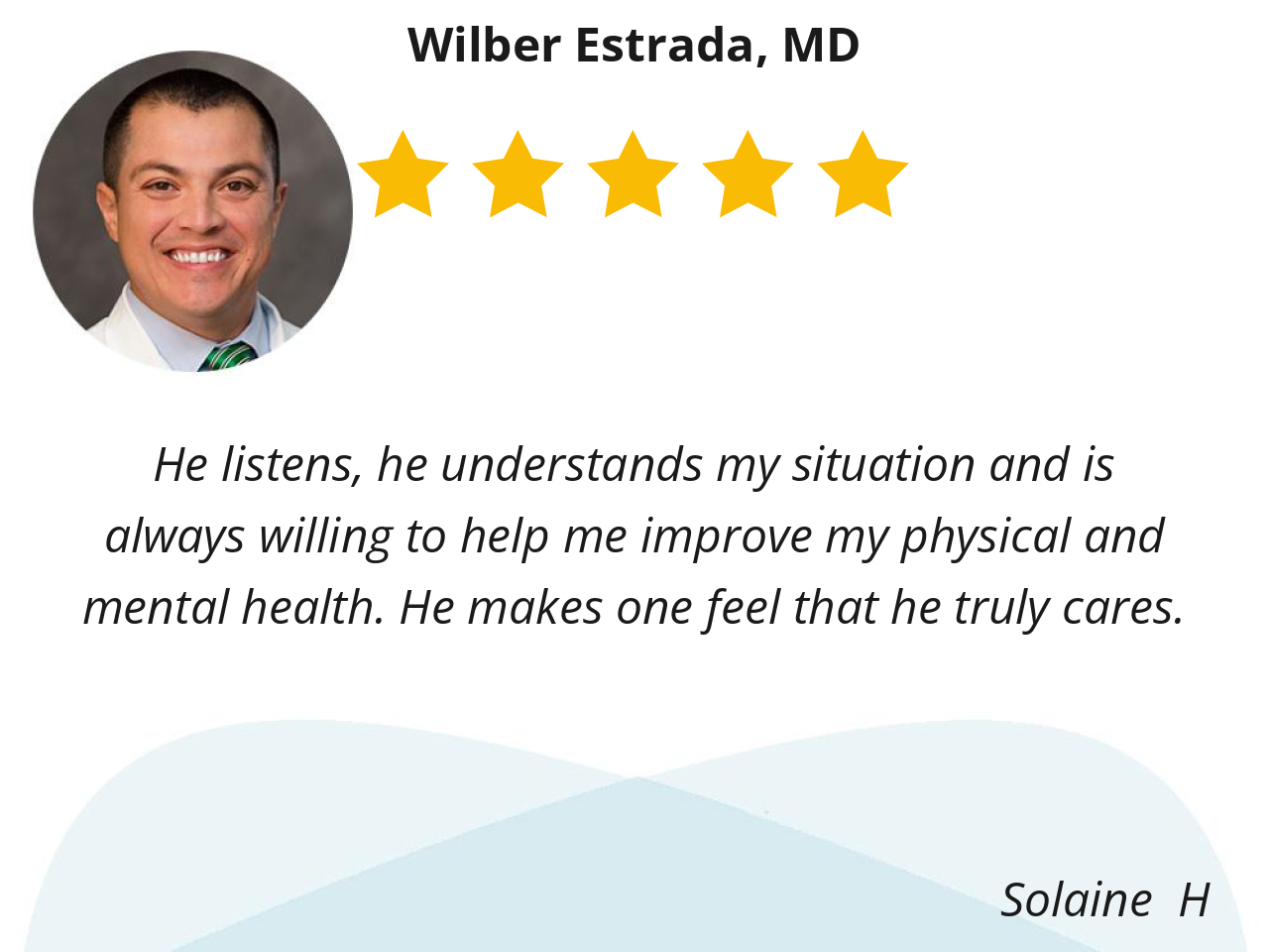 He listens, he understands my situation and is always willing to help me improve my physical and mental health. He makes one feel that he truly cares.