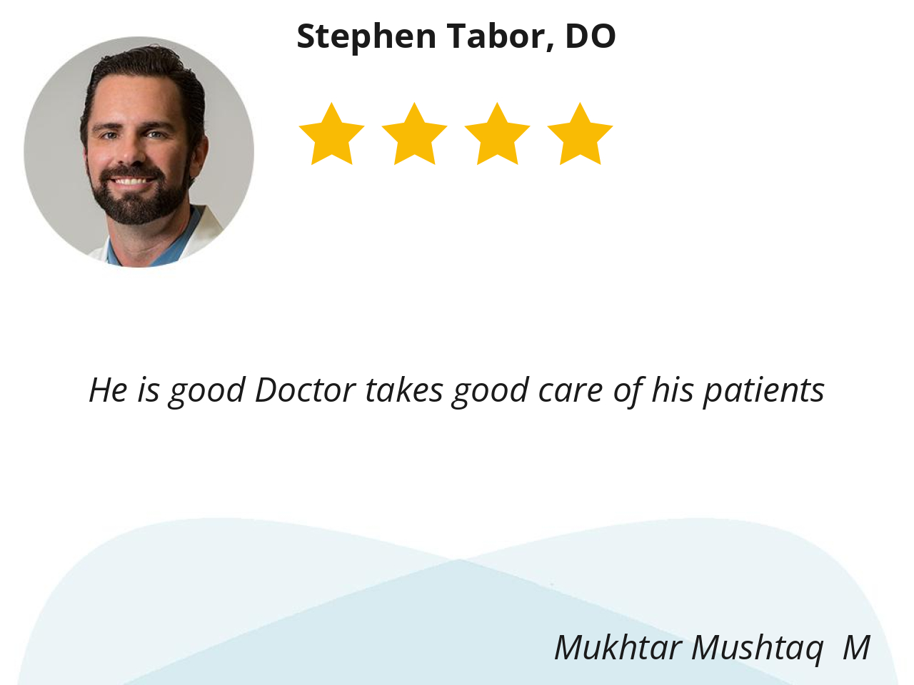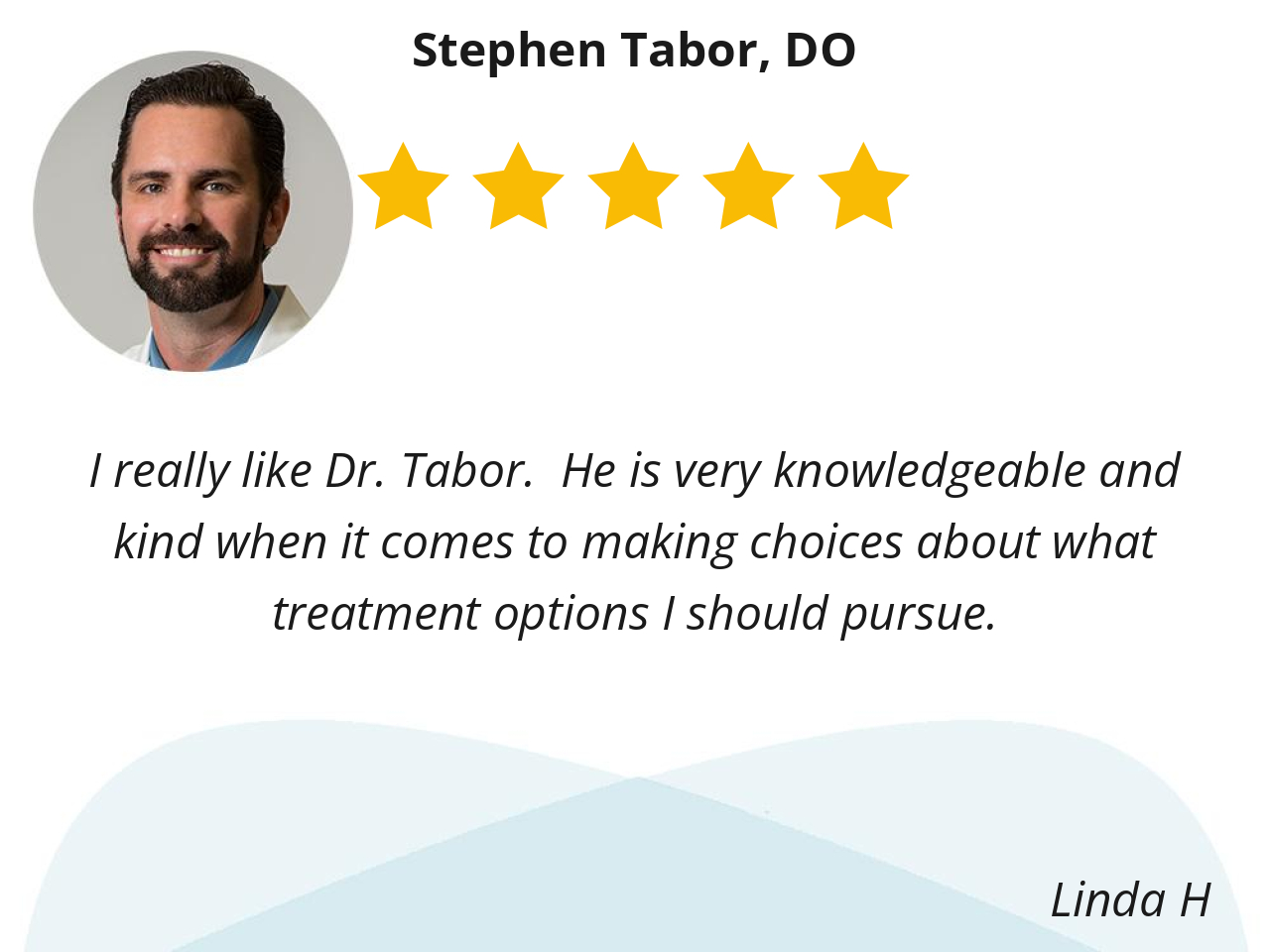 I really like Dr. Tabor. He is very knowledgeable and kind when it comes to making choices about what treatment options I should pursue.
