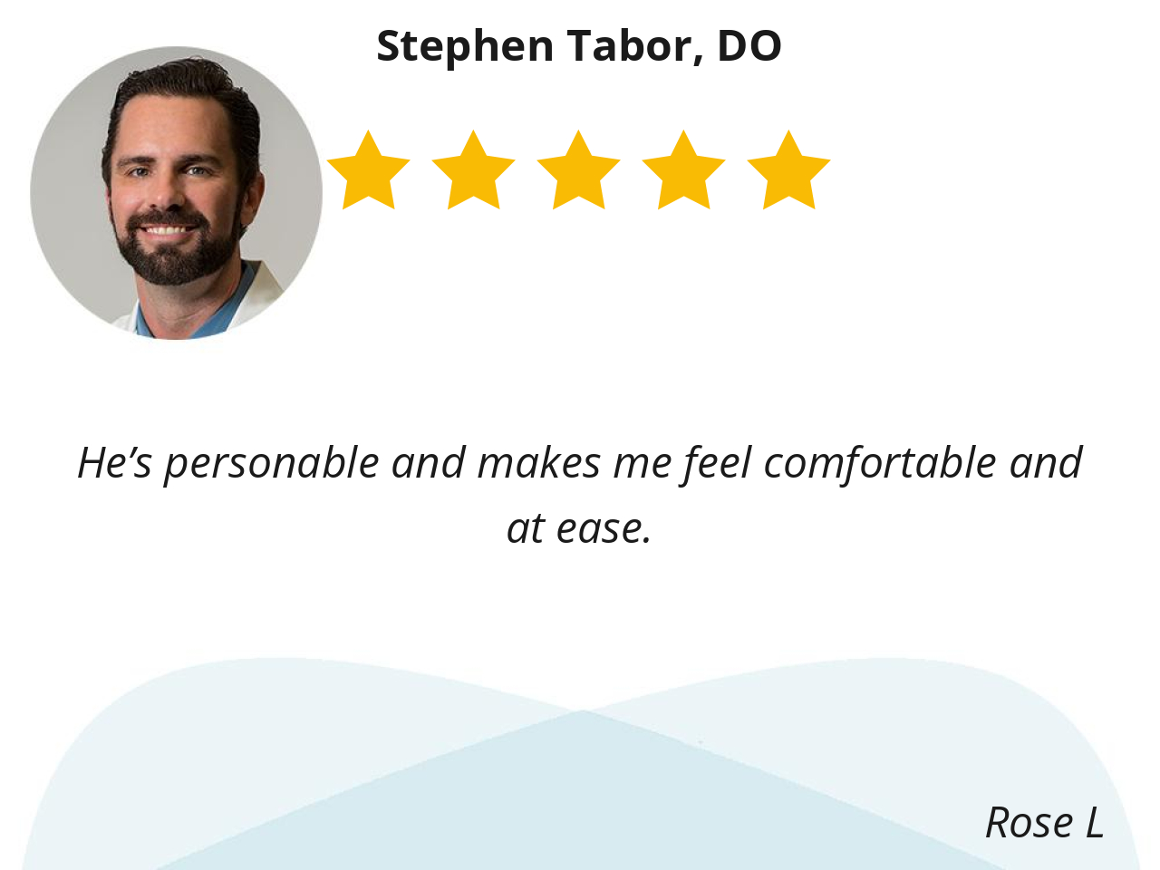 He’s personable and makes me feel comfortable and at ease.