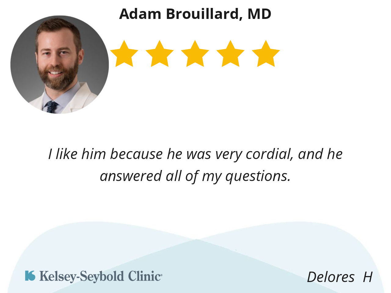 I like the Doctor because he’s very through and he listens to my concerns and I also like that he gets back with me very quickly with the results of my test