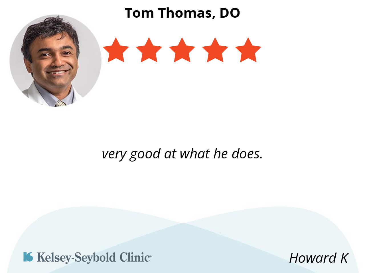 Because Dr. Thomas is always very professional and empathetic with his patients. He is a no-nonsense doctor and does not sugar coat his instructions for treatment.
