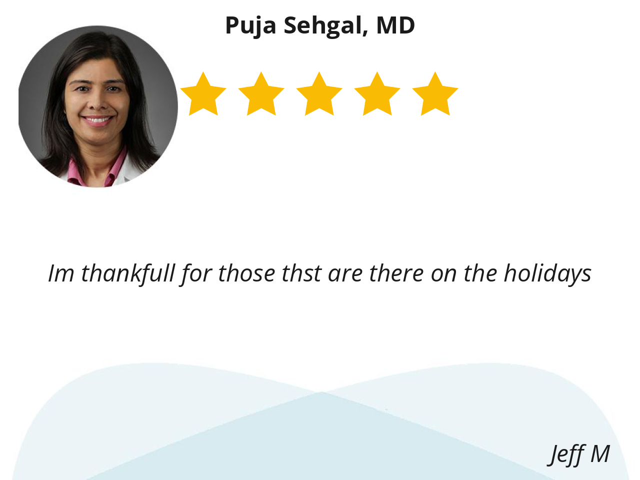 She is kind. She listens to when you explain about what’s going on with your body. She respects her patients and she is one of the best doctors that I’ve had in 60+ years.