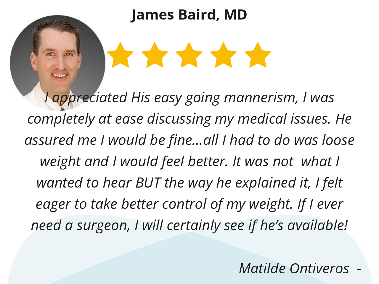 Dr. Baird is professional and funny . I have been known him as my surgeon over 15 years. I felt very confident that he will do a good job. I am happy that he is my surgeon.