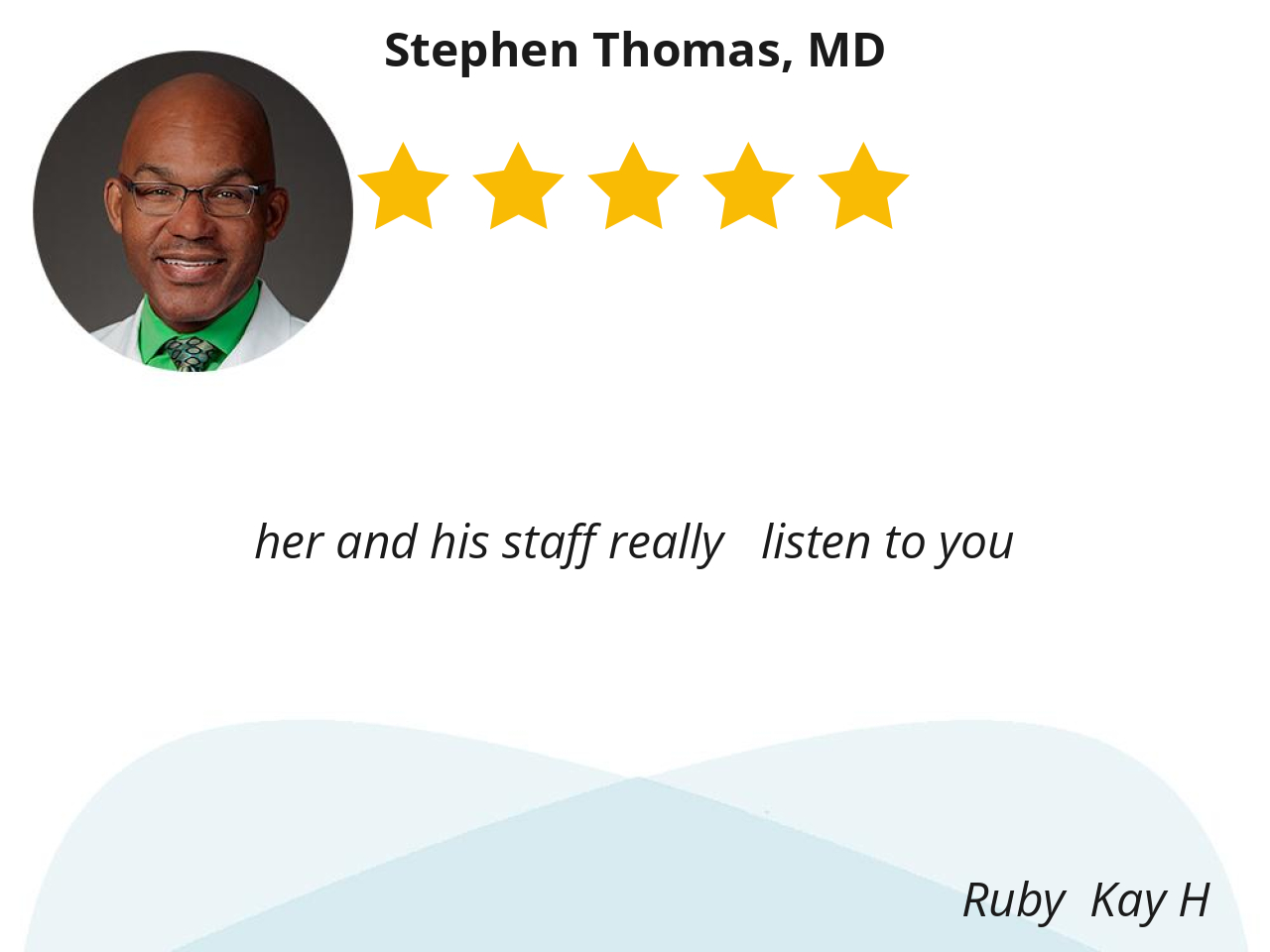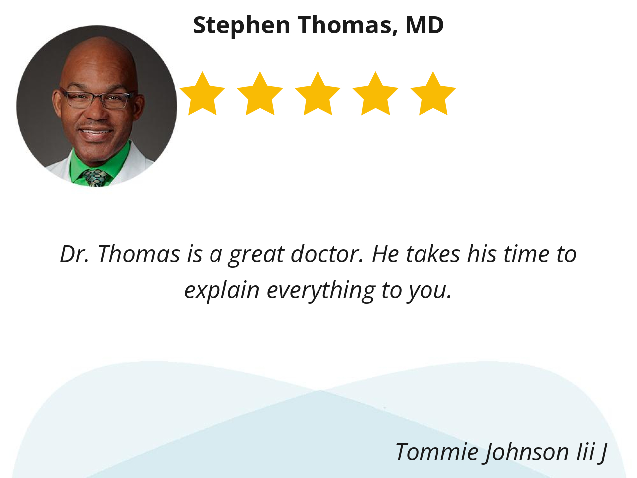 I have been a patient of Doctor Thomas for over 20 years. He has done a very good job of my care. Thank you