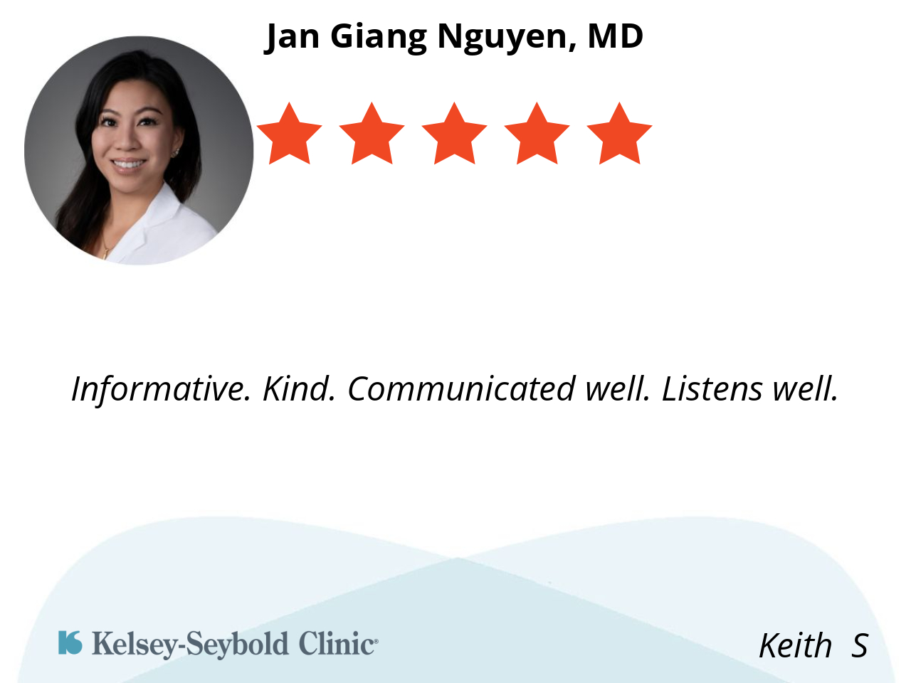 Exceptional 2-way communicator with excellent medical knowledge. Listens to symptoms, asks appropriate questions during exam, and thoroughly explains diagnosis and treatment. Readily answers all my questions.