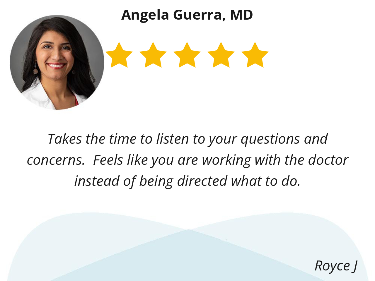 Doctor Guerra listen to me and answered all my questions. I felt satisfied leaving the appointment.