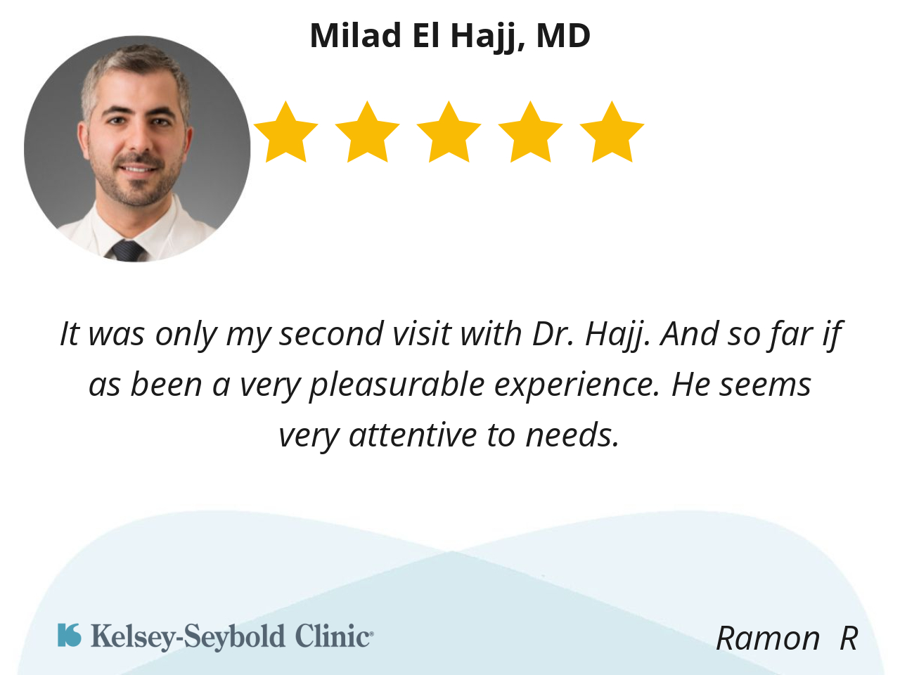 It was only my second visit with Dr. Hajj. And so far if as been a very pleasurable experience. He seems very attentive to needs.