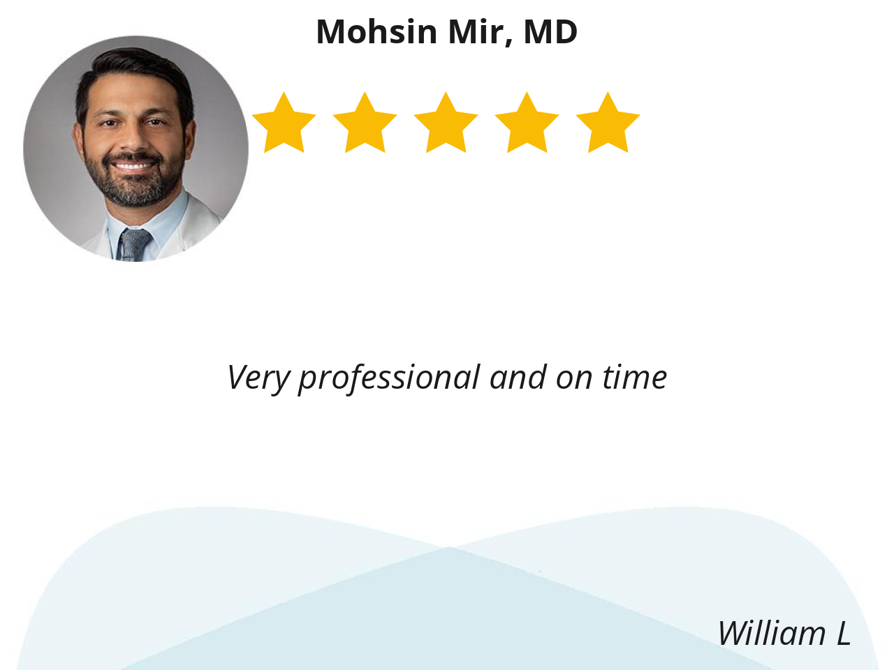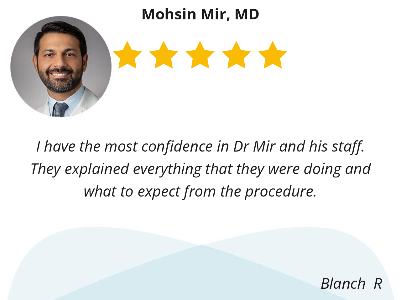 I have the most confidence in Dr Mir and his staff. They explained everything that they were doing and what to expect from the procedure.