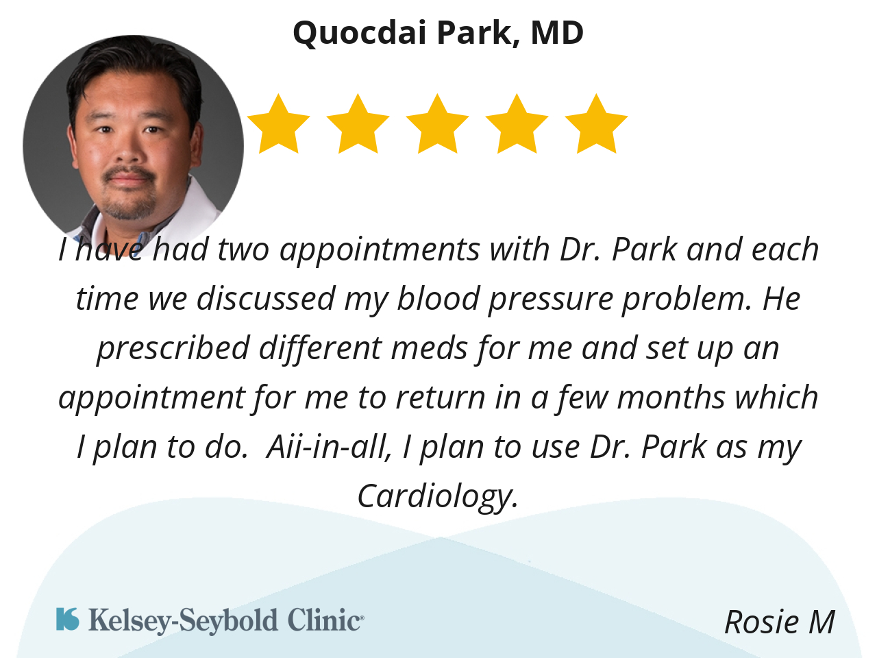 I have had two appointments with Dr. Park and each time we discussed my blood pressure problem. He prescribed different meds for me and set up an appointment for me to return in a few months which I plan to do. Aii-in-all, I plan to use Dr. Park as my Cardiology.