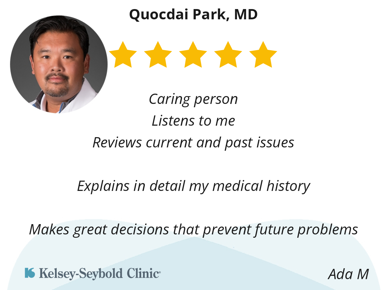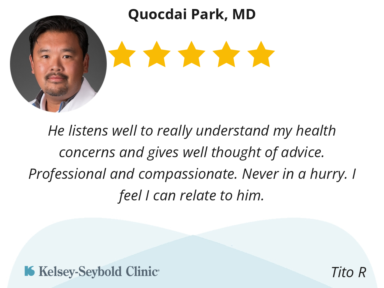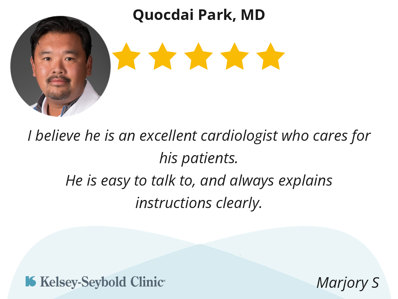 Unlike the two other Cardiologists at Kelsey I have formerly visited with, Dr. Park is easy to communicate with, and I feel that he understands my concerns and his Notes accurately reflect that.