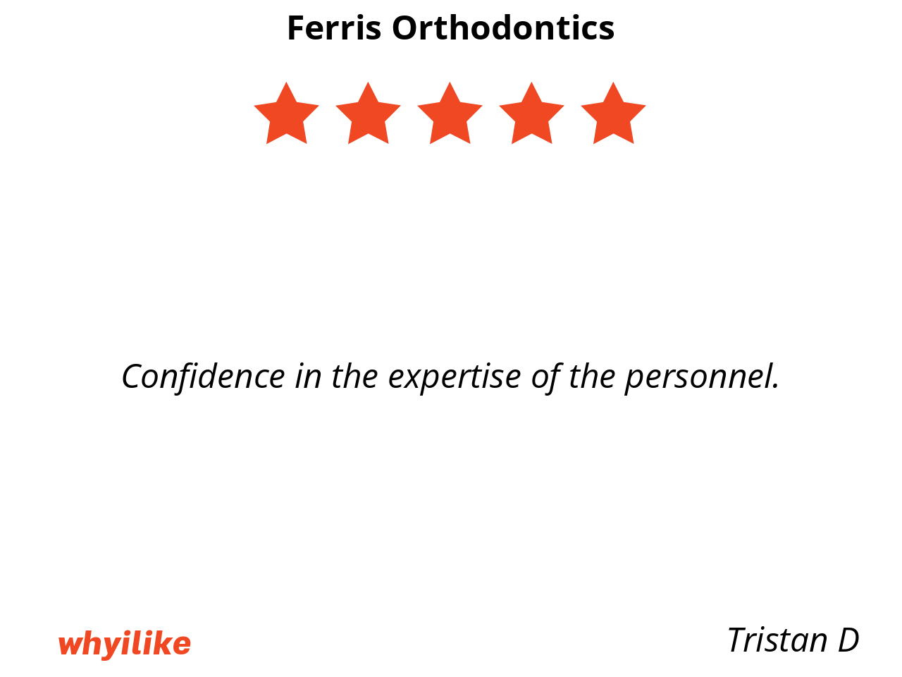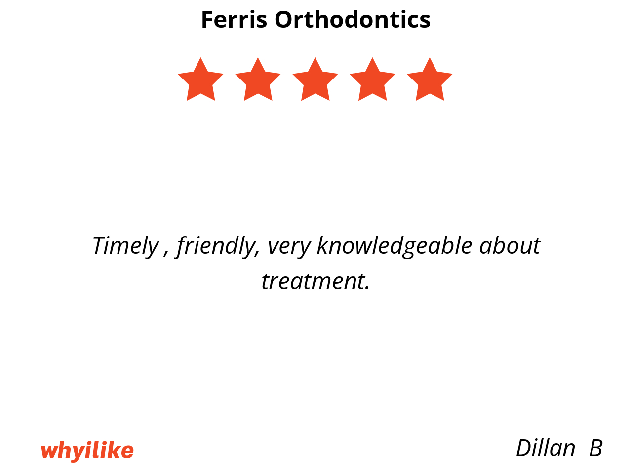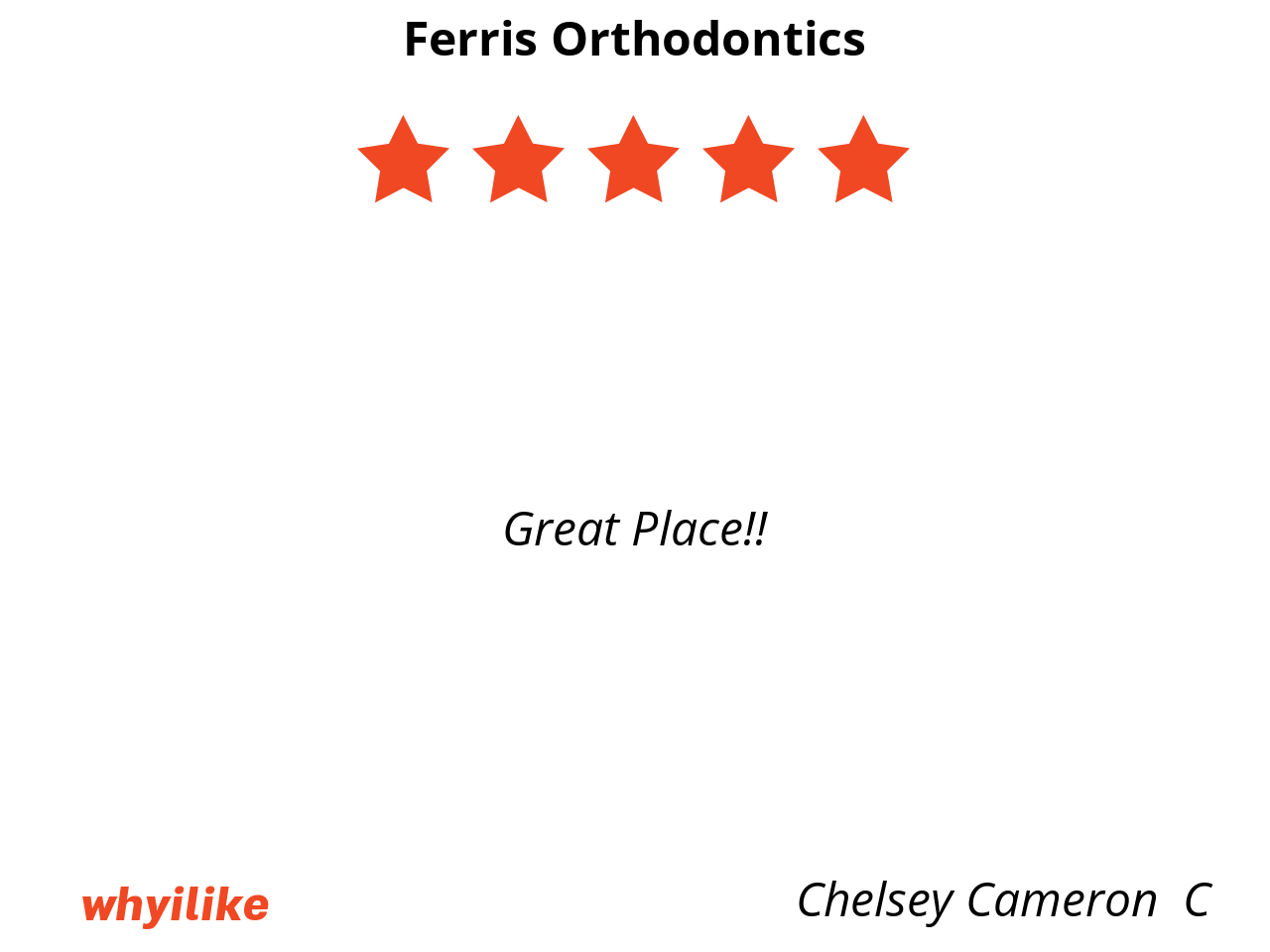 If your kid need braces, or if you need braces, I highly recommend Ferris orthodontics.