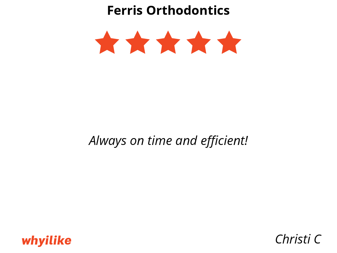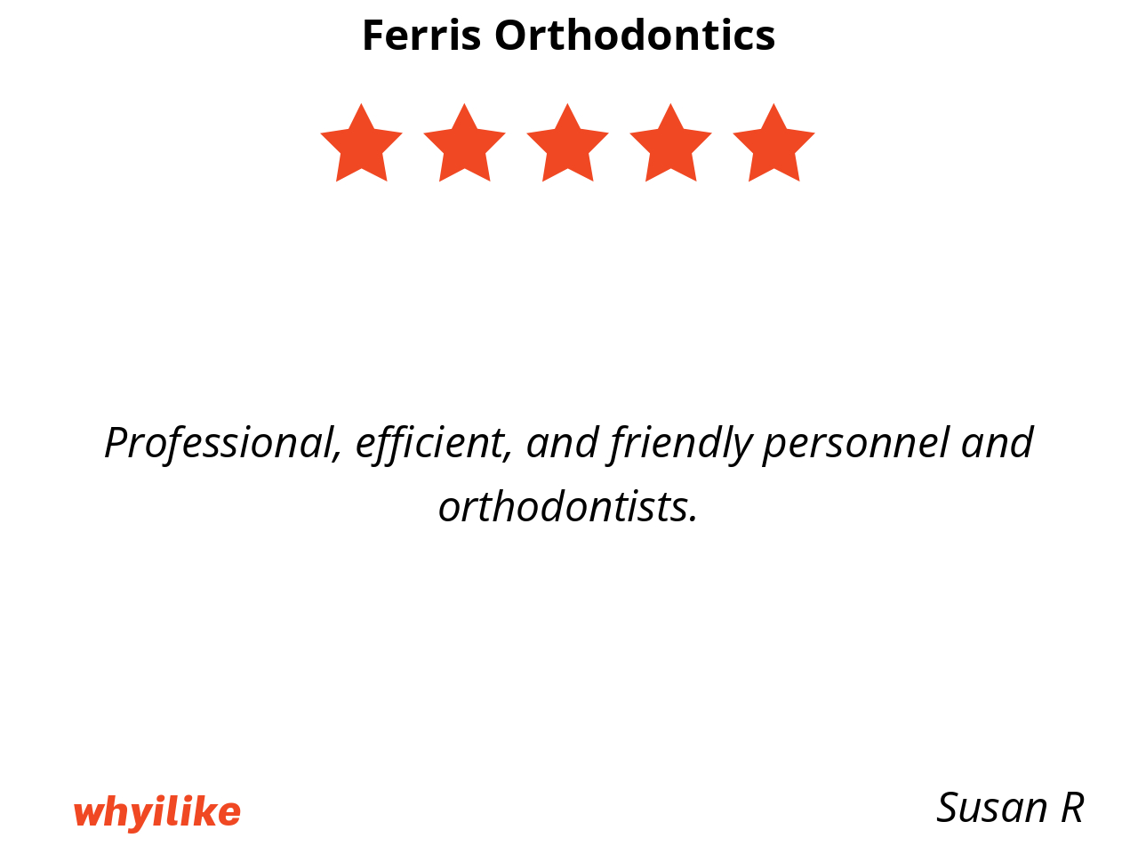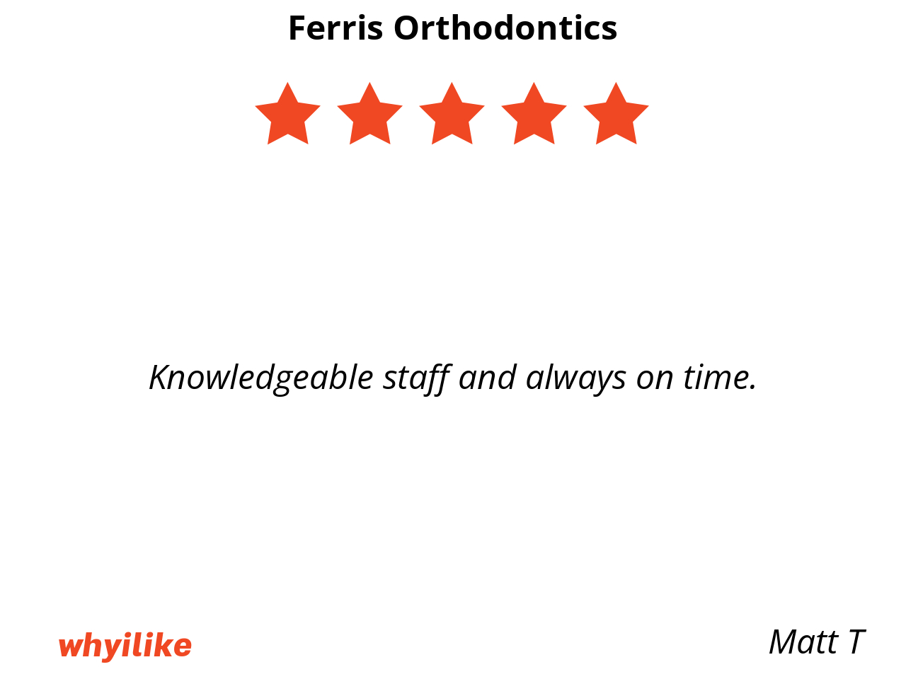 If your kid need braces, or if you need braces, I highly recommend Ferris orthodontics.