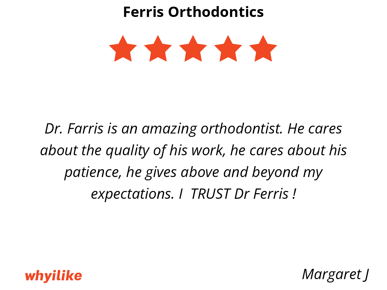 Dr. Farris is an amazing orthodontist. He cares about the quality of his work, he cares about his patience, he gives above and beyond my expectations. I TRUST Dr Ferris !