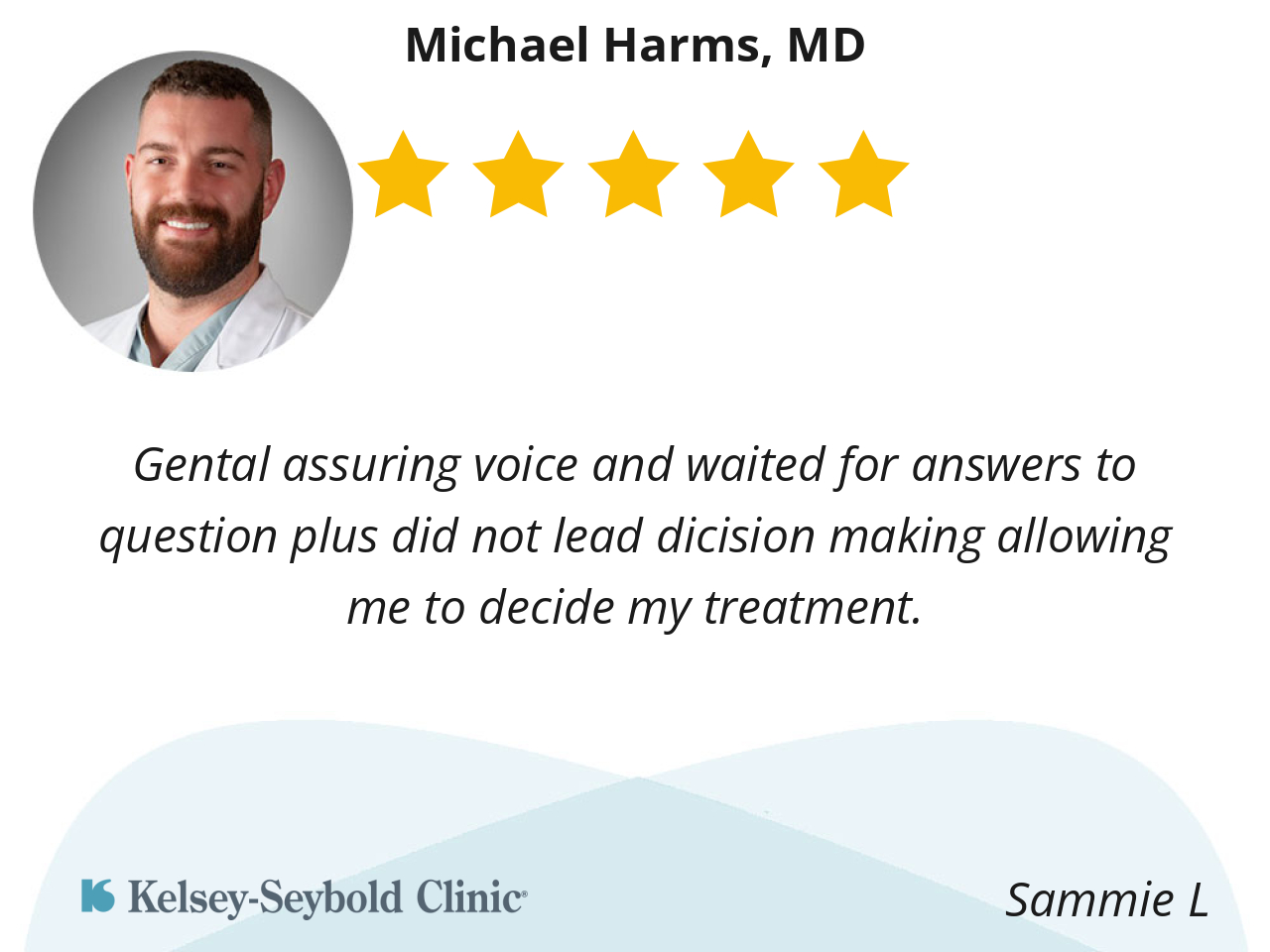 Dr. Harms seemed genuinely interested in what was going on with me. He was knowledgeable knowledge and asked great questions. I felt trust in him.