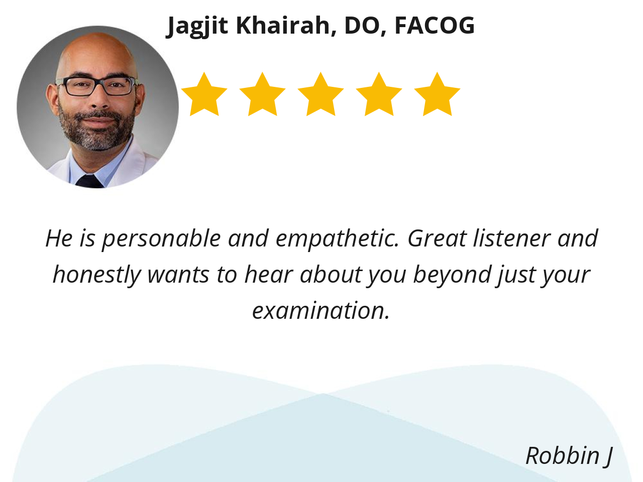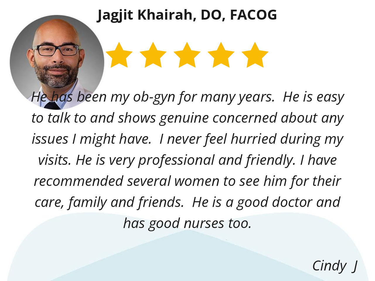 I appreciate his expertise in women's health, the open communication he fosters, and the sense of protection he provides during vulnerable moments.