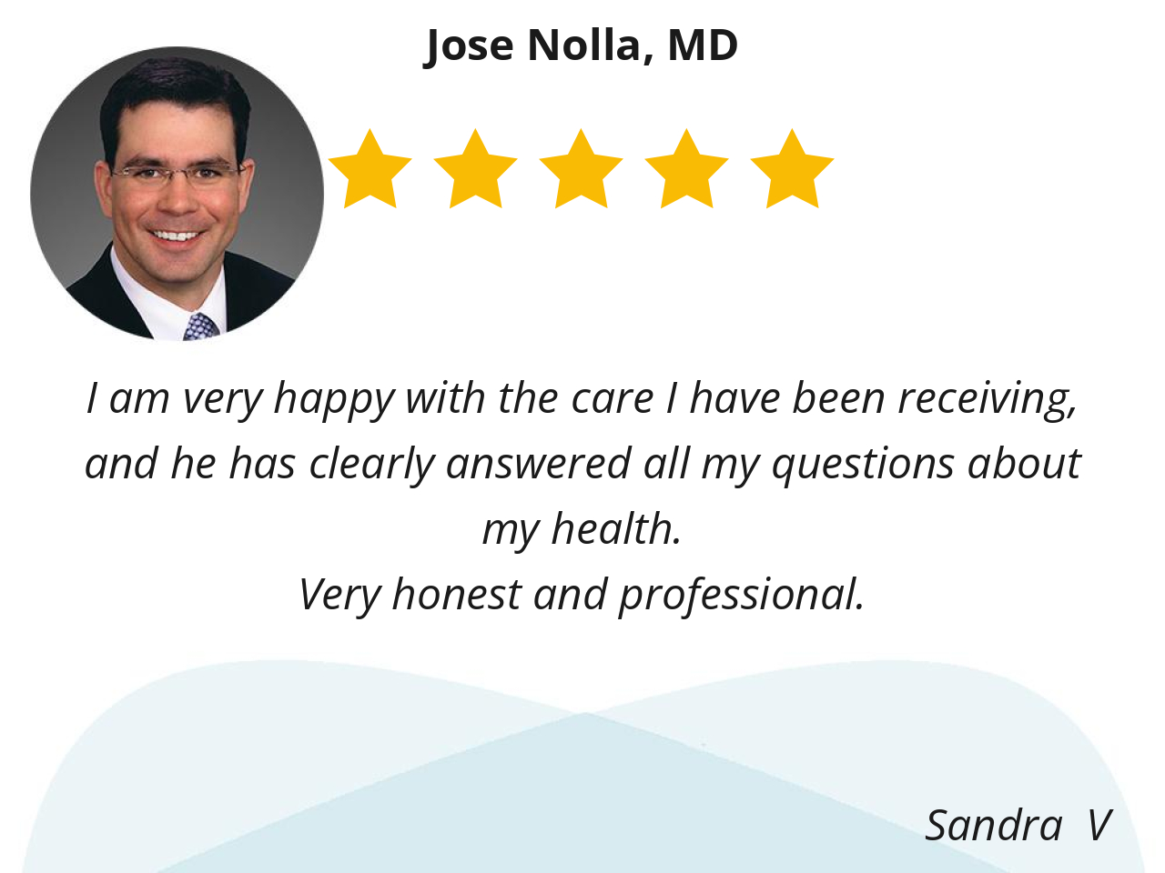 Dr, Nolla is professional and courteous. He listened to me and answered my questions to my satisfaction.