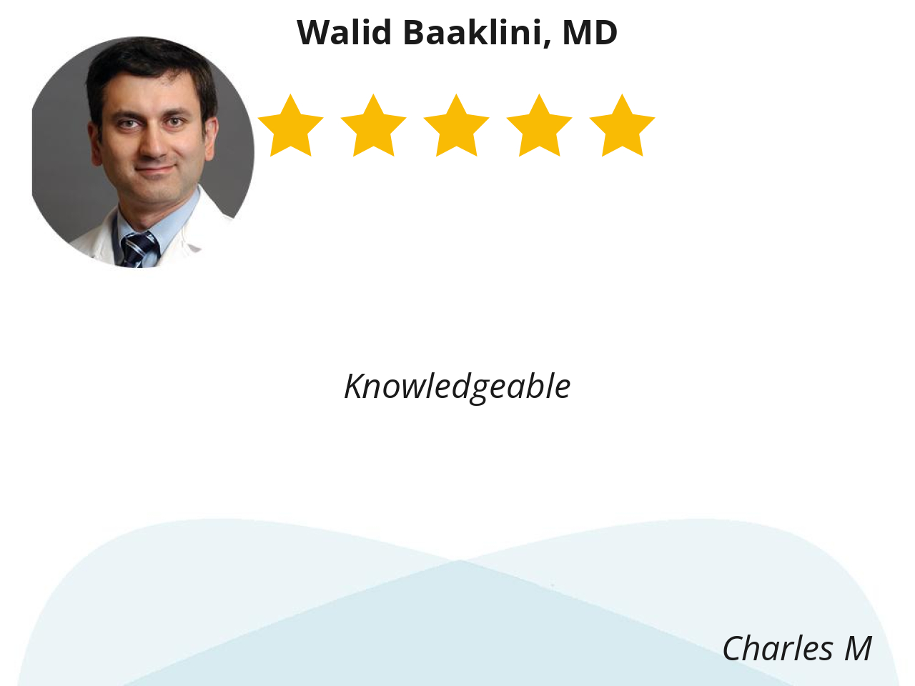 I truly like Dr. Baaklini because, he was very knowledgeable. He explained what I was experiencing with my health. Talked with me and answered all my questions. He took time with me and showed genuine concern for what I was going through. For follow up Dr. Baaklini will be my first choice.