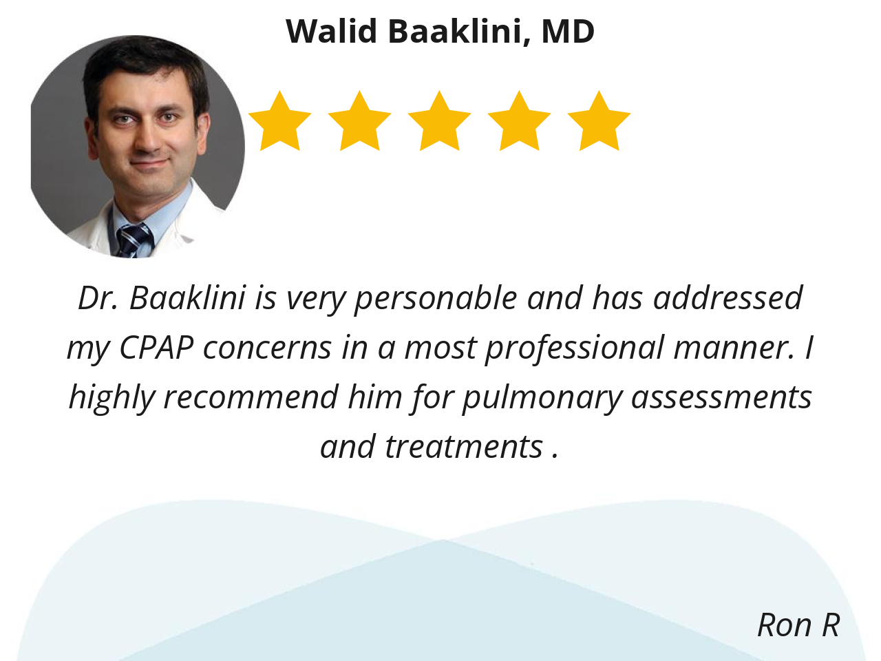 Dr. Baaklini is very personable and has addressed my CPAP concerns in a most professional manner. I highly recommend him for pulmonary assessments and treatments .