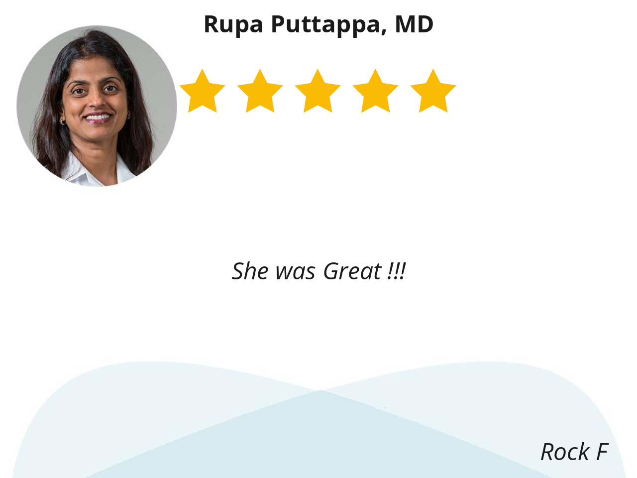 Dr. Puttappa is attentive, knowledgeable, responsive, friendly, articulate, has good PA assistance, everything is great with her.