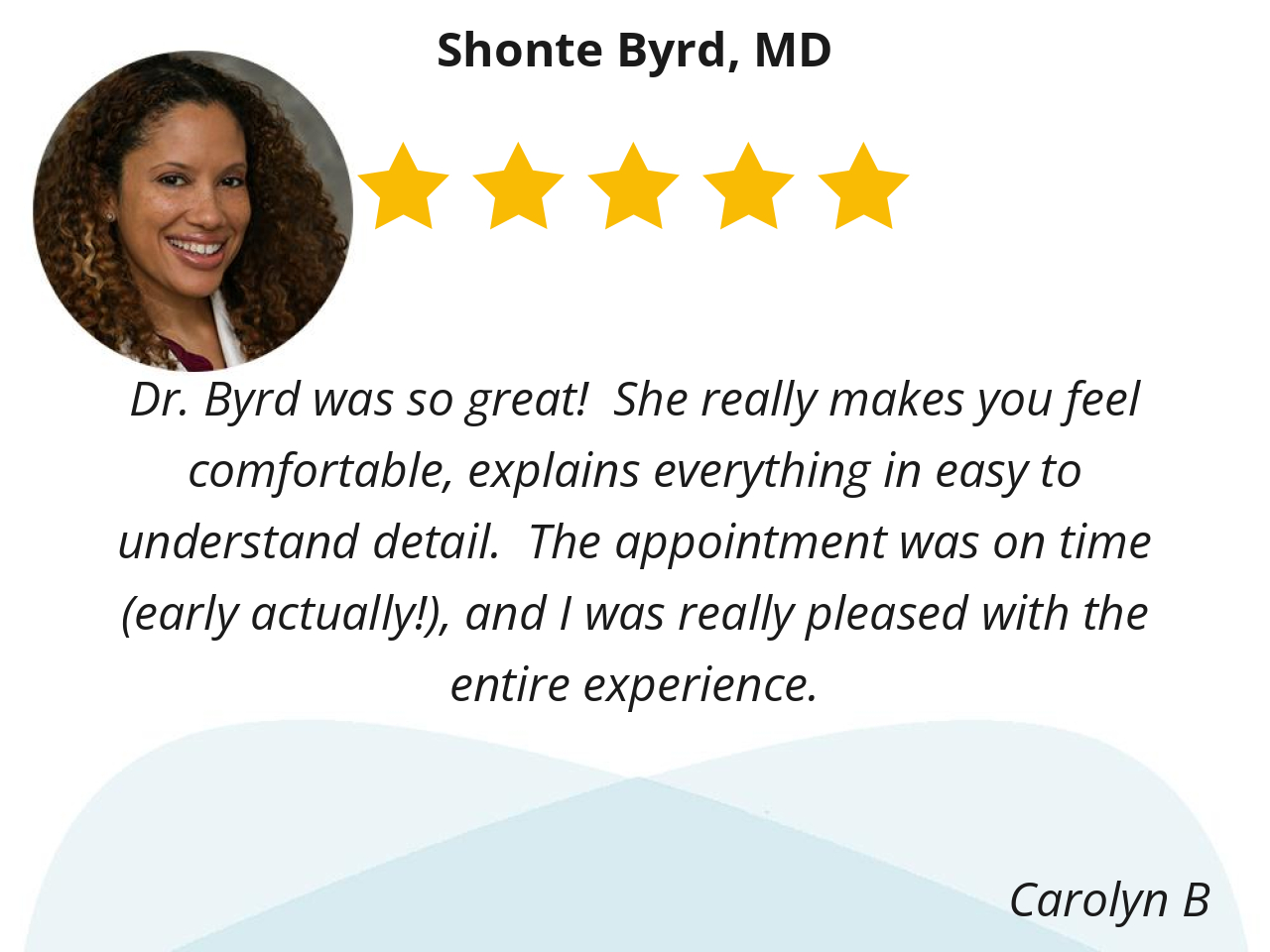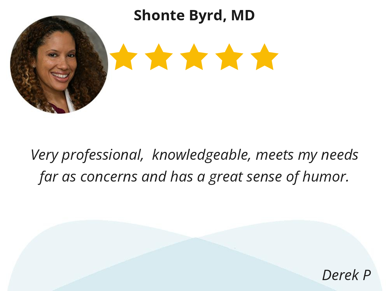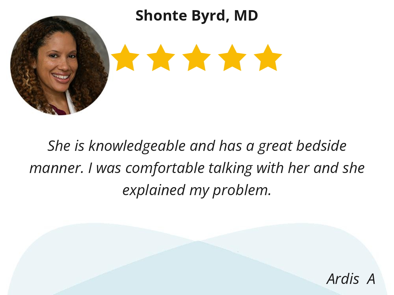 Dr. Shonte Byrd asks the right questions, she listens, she’s empathetic, and professional.