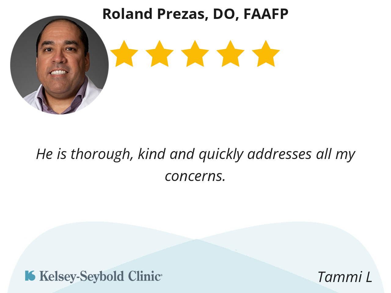 I love Dr Prezas because he is a caring and passionate doctor. His compassion is beyond what I expected. He is very knowledgeable, has an excellent bedside manner and is pleasing to be around.