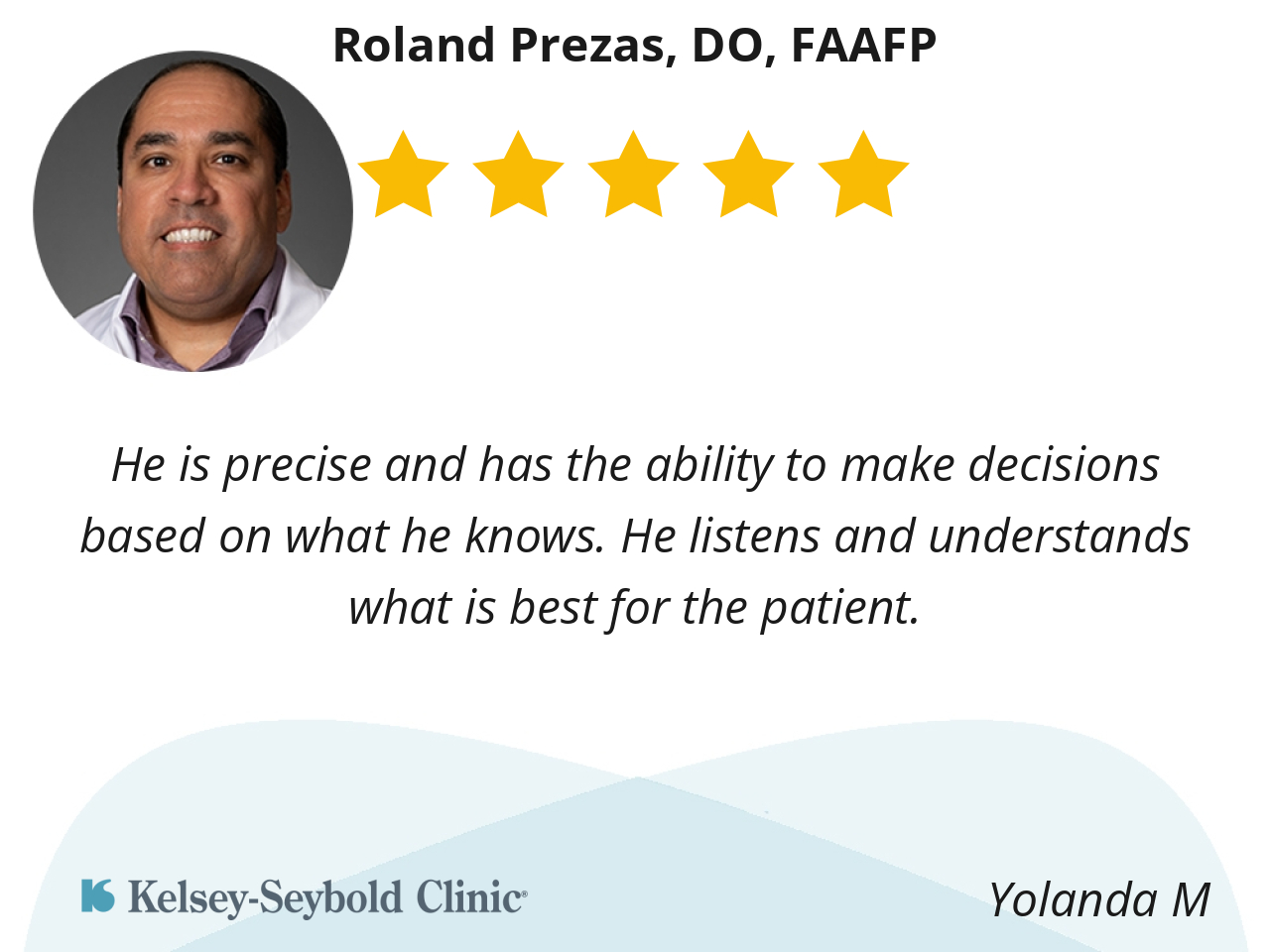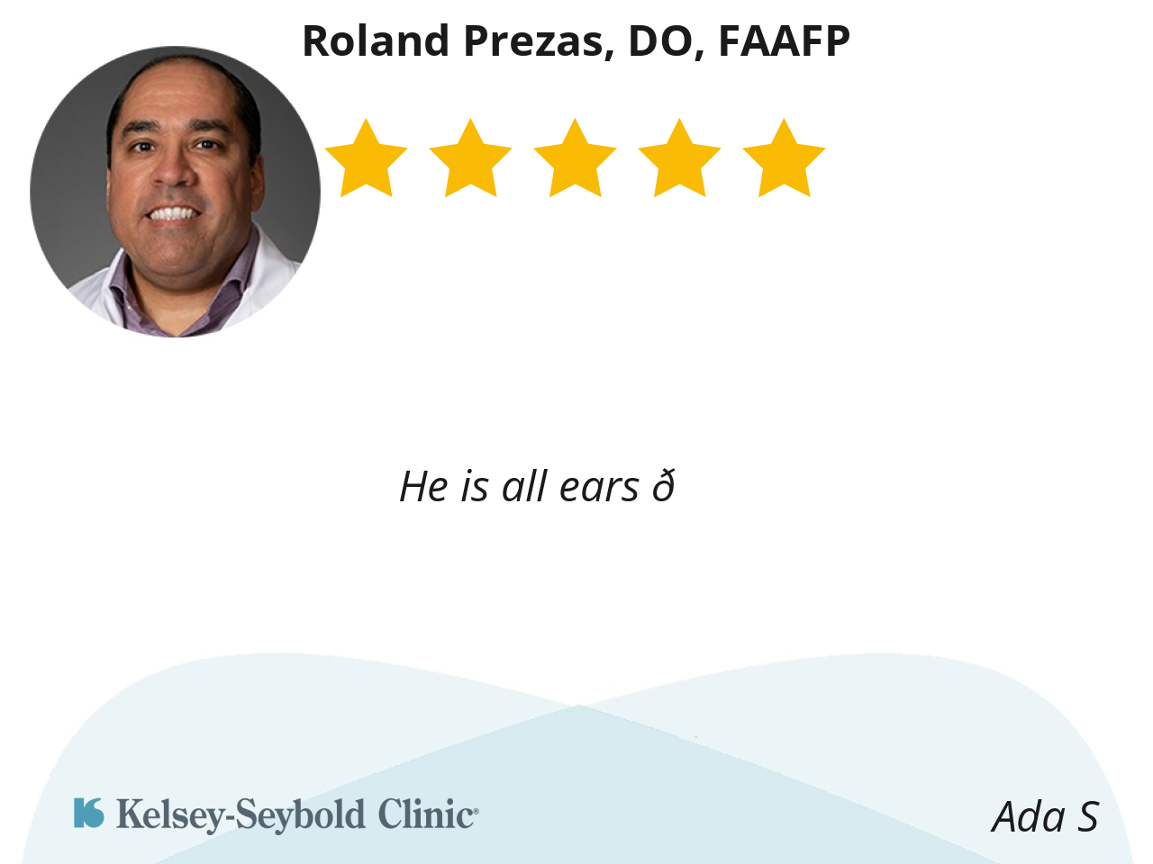 I like dr Prezas cause he listen all the concerns about my health and he takes the time to explain me everything clear