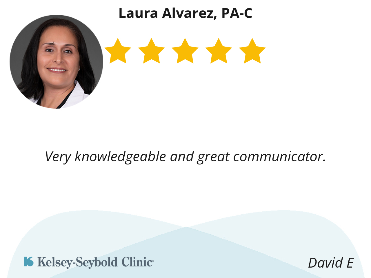 I really like PA Laura. She is very thorough during her review of my wound's healing progress. She never pressures me but giving me solid advice on how to advance my healing.