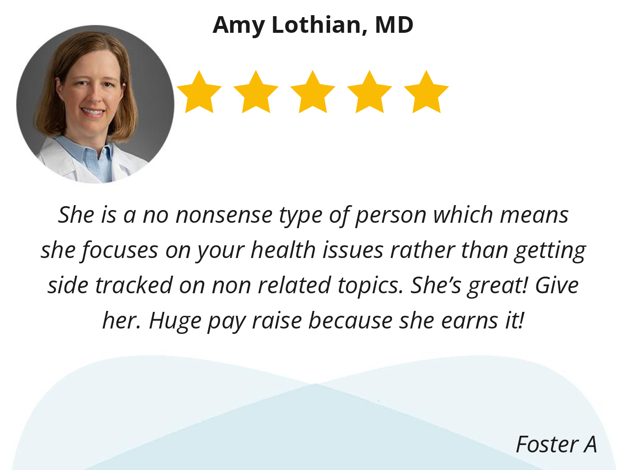 Dr. Lothian is awesome. Always take the time to explain lab results and swiftly order necessary tests.