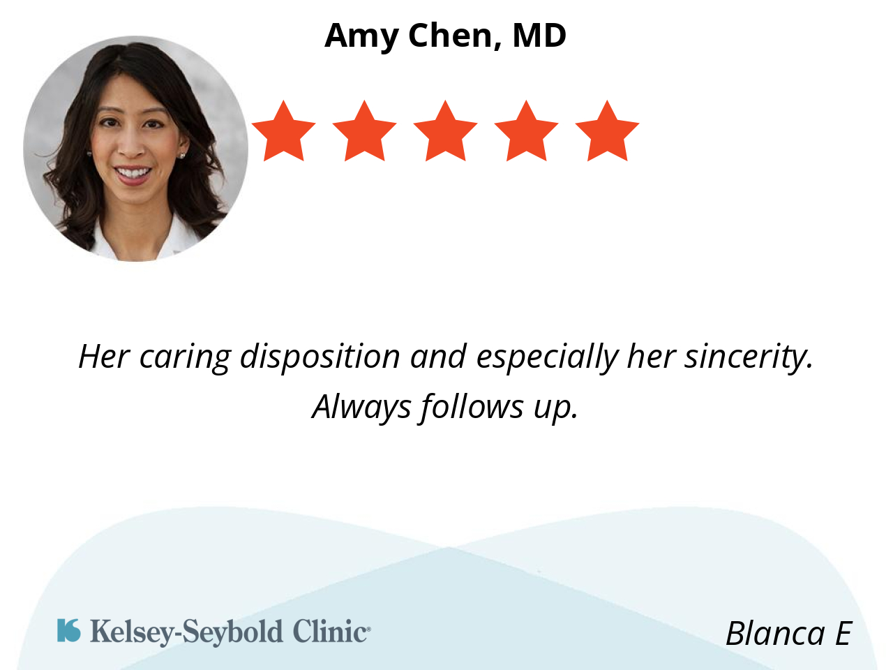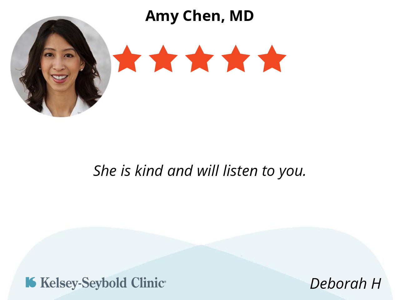 I like doctor Chen because she’s caring and knowledgeable.