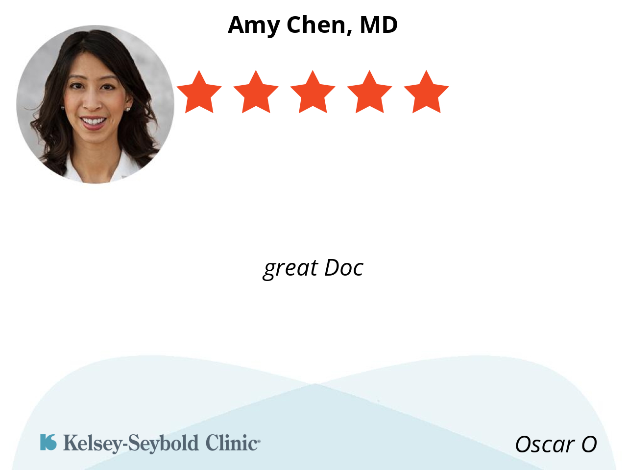 I like my Dr. Amy Chen a lot due to the fact that she's a woman an understands my issues, she is very thorough, an I always get what I need when I see her, also she's a good listener an she don't judge. DR VU is my 2nd favorite Dr.