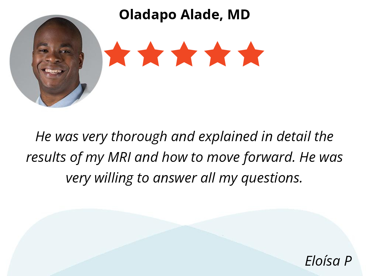 Dr. Alade made me feel like he truly cared for me and what caused my condition.
