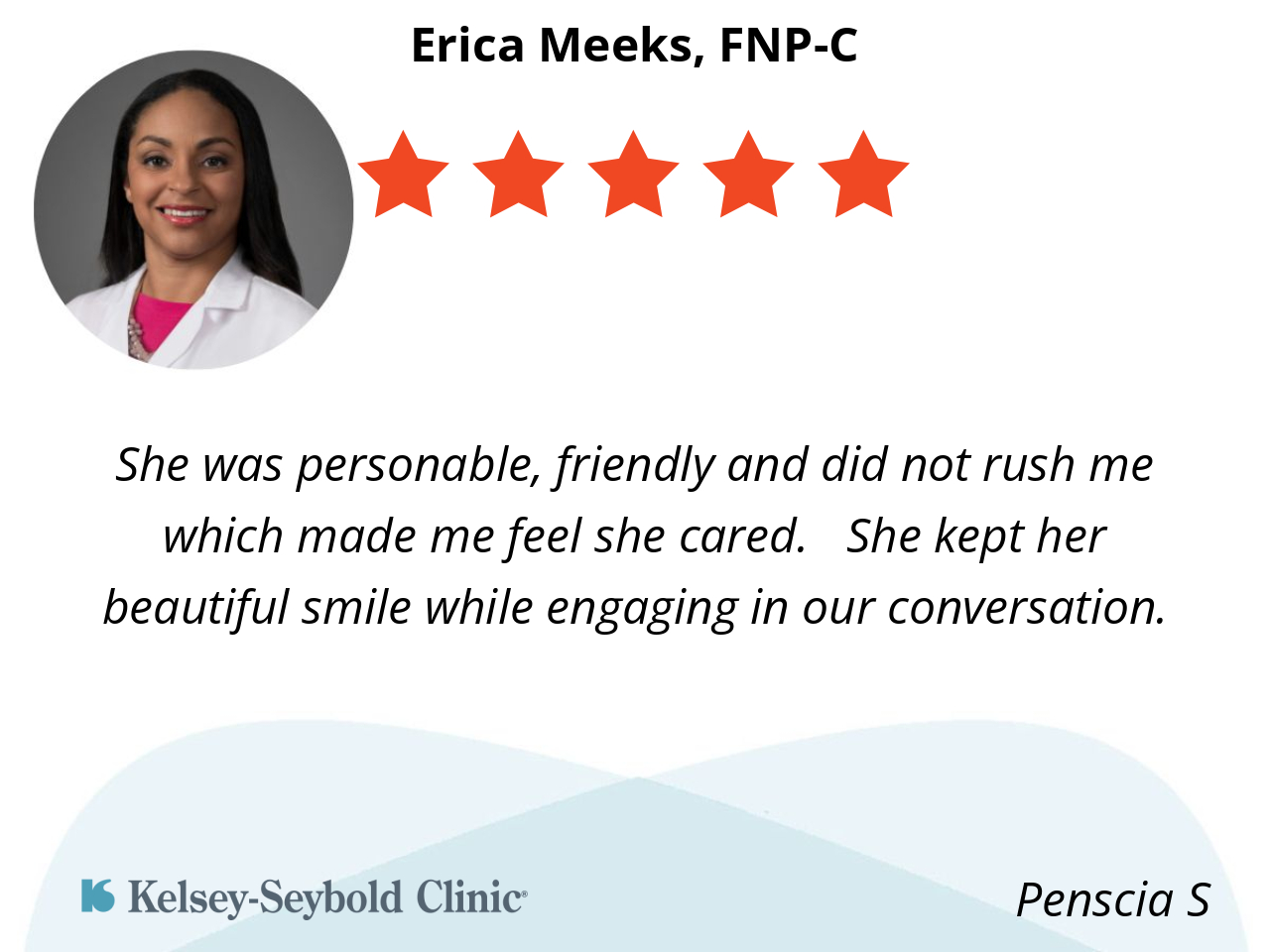 Excellent care. During a time of sickness, kindness is even more appreciated. I felt heard and genuinely cared about. My treatment plan was presented and all questions were answered. Thank you for your knowledge and kindness Dr. E. Meeks.