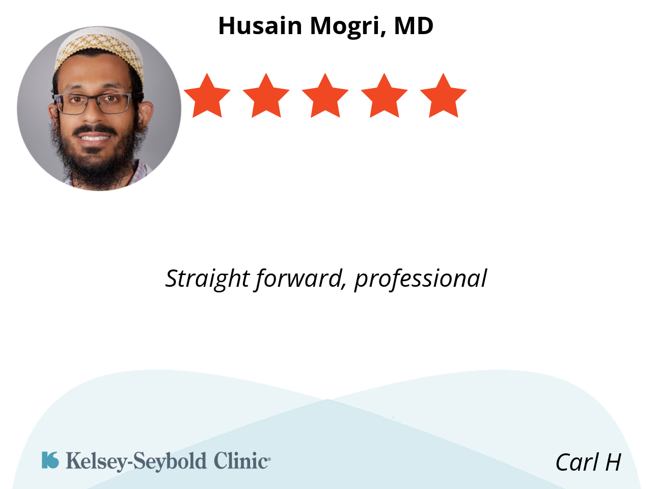 Because Dr. Mogri always seems to pay close attention to what is wrong! He is very easy to talk to, and I like him! Also, he usually has a good answer to medical problems!