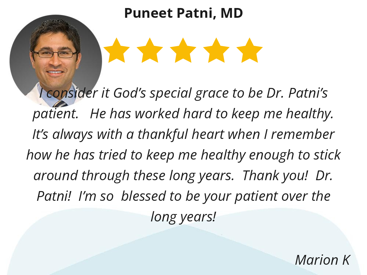 I consider it God’s special grace to be Dr. Patni’s patient. He has worked hard to keep me healthy. It’s always with a thankful heart when I remember how he has tried to keep me healthy enough to stick around through these long years. Thank you! Dr. Patni! I’m so blessed to be your patient over the long years!
