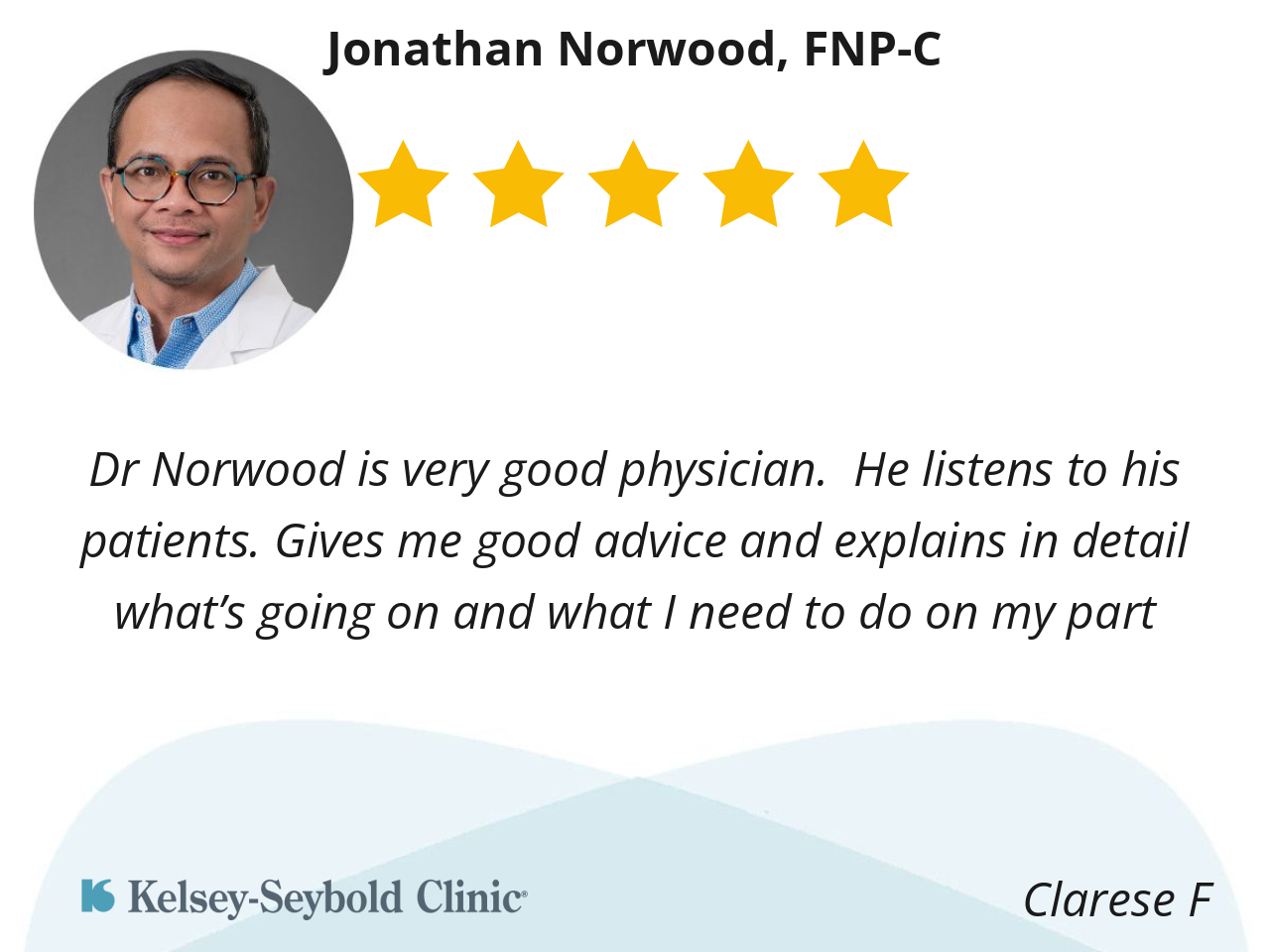 Dr Norwood is very good physician. He listens to his patients. Gives me good advice and explains in detail what’s going on and what I need to do on my part