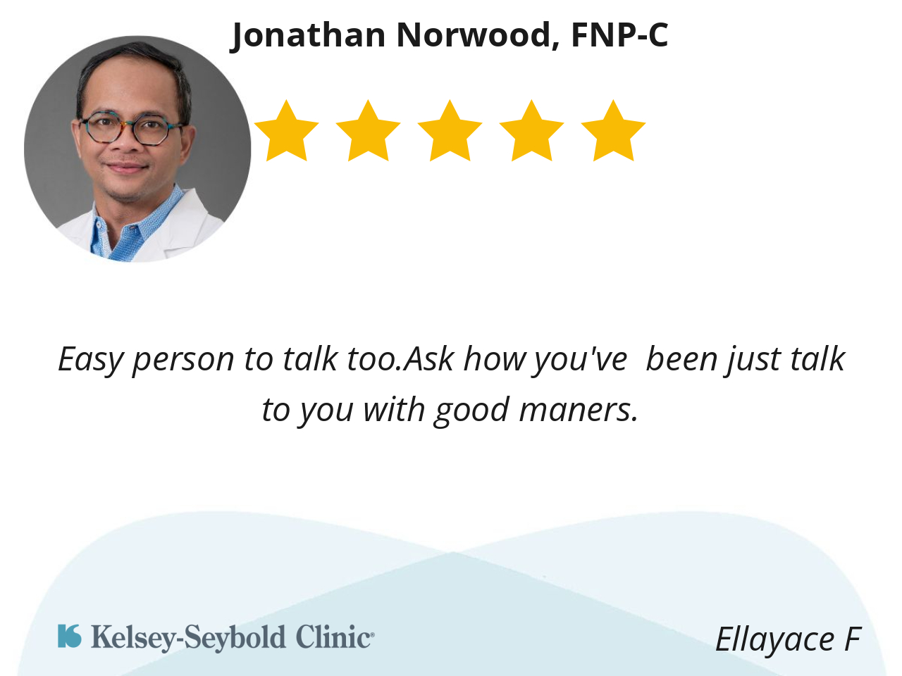 He is nice friendly he’s cares about the well being of his patients