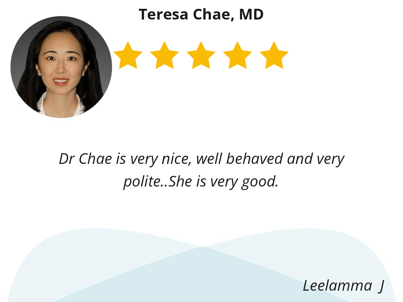 Dr Chae is very nice, well behaved and very polite..She is very good.