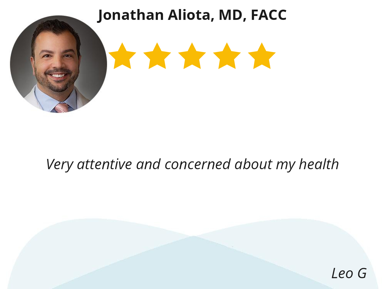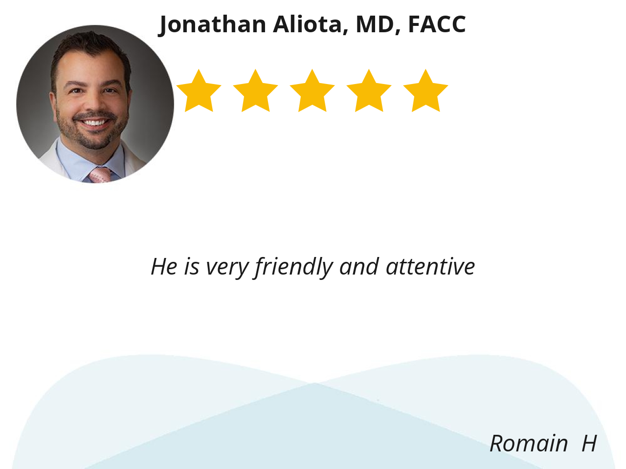 I am grateful for the care and expertise provided by Dr. Aliota and his staff. Over time, his management of my cardiac health problems has played a vital role in keeping me stable and healthy. His attentive approach, clear communication, and genuine concern for my well-being have made a significant difference to my health.