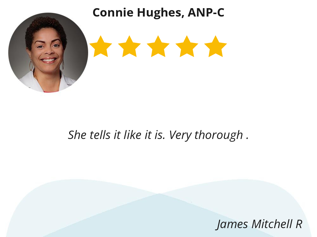 Connie Hughes is knowledgeable and kind. She carefully listens, and asks relevant questions when elaborating/explaining my care plan.
