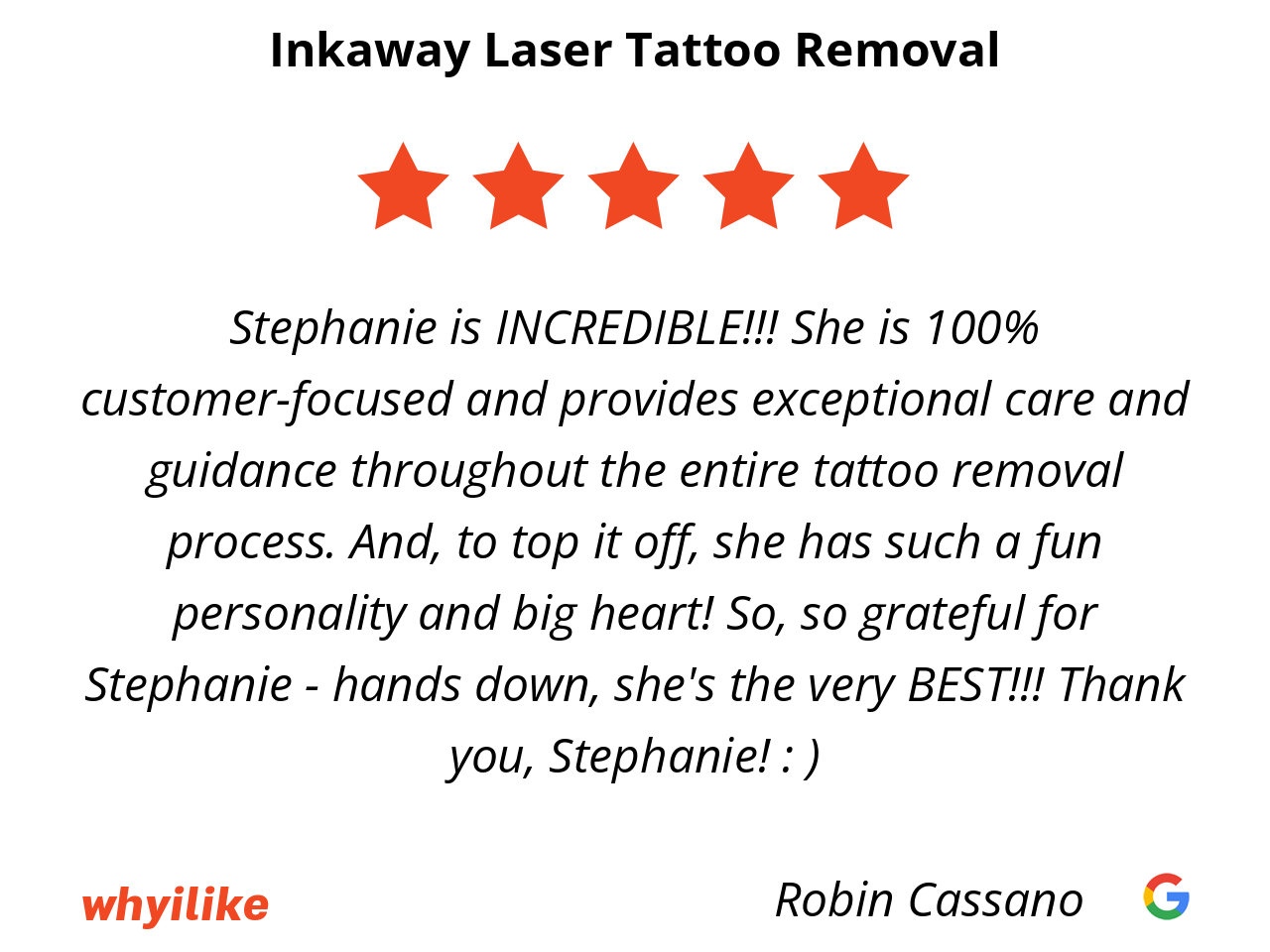 Stephanie is awesome and makes every effort to accommodate my schedule and would definitely recommend her for tattoo removal. (Source: Client)