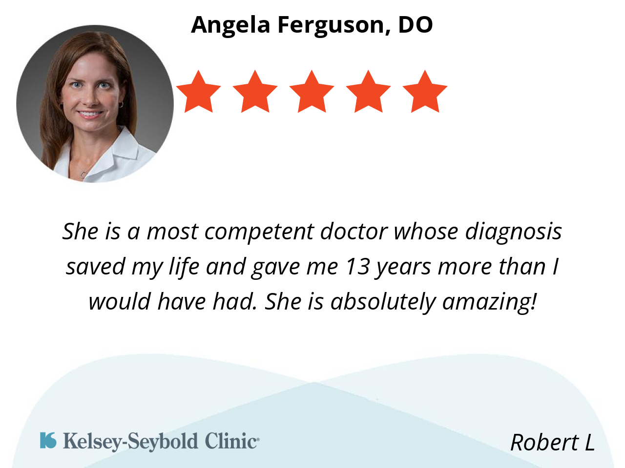 Dr. Ferguson saved my life in 2015 by placing a stent in my main heart artery and has been very diligent with my care ever since. She encourages exercise for heart health and keeps check on blood pressure & cholesterol to maintain a healthy heart.