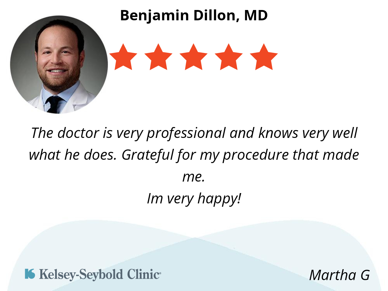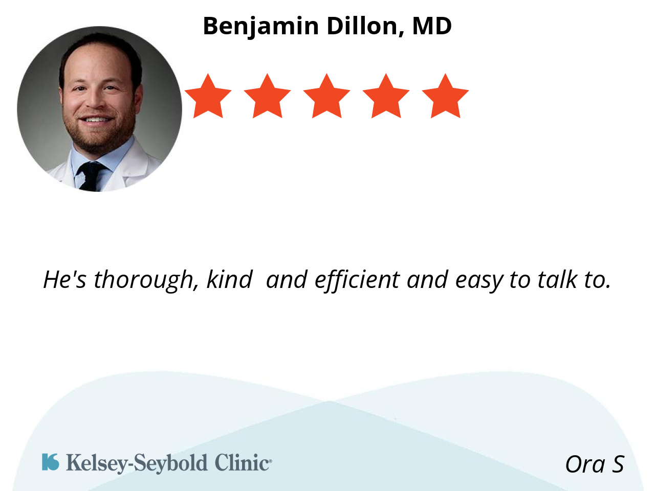 This was my first time meeting Dr. Dillon, the office visit was great! Dr. Dillon explained everything in complete detail and he did not rush the visit. Dr. Dillon is my superhero just because of his patience, kindness, and above all he really cares about his patients.
