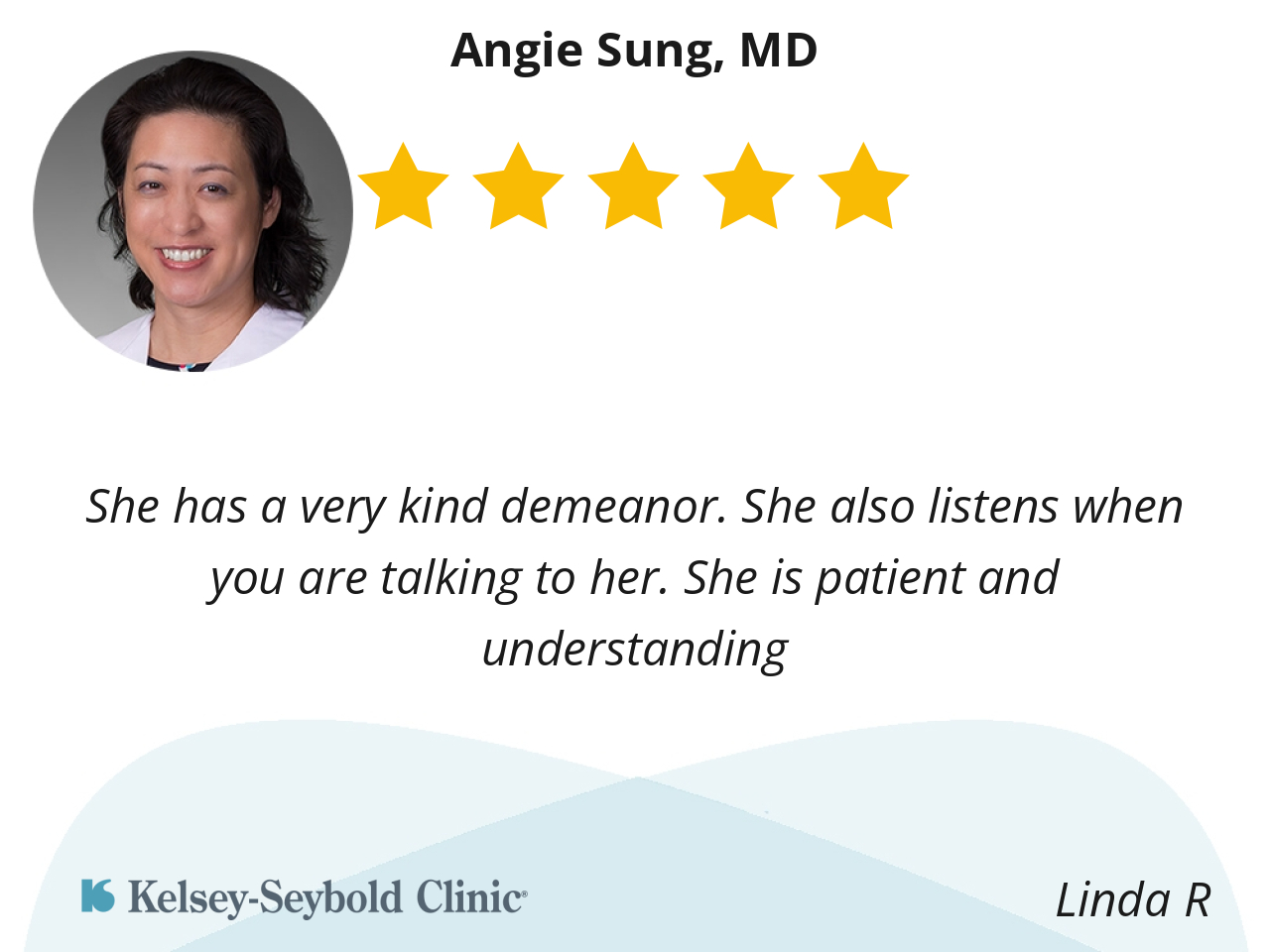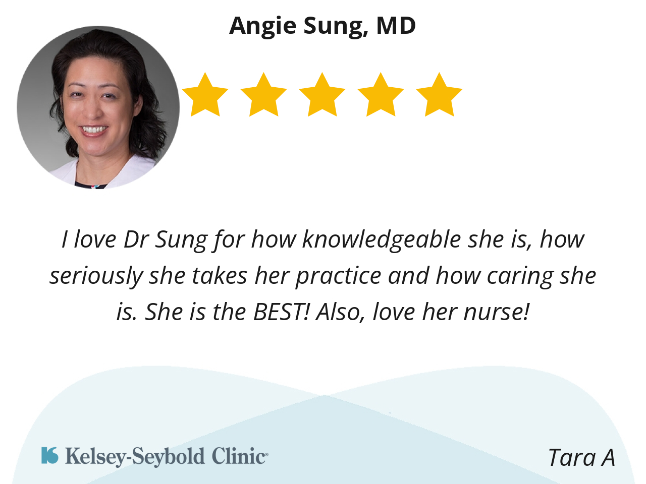 I love Dr Sung for how knowledgeable she is, how seriously she takes her practice and how caring she is. She is the BEST! Also, love her nurse!