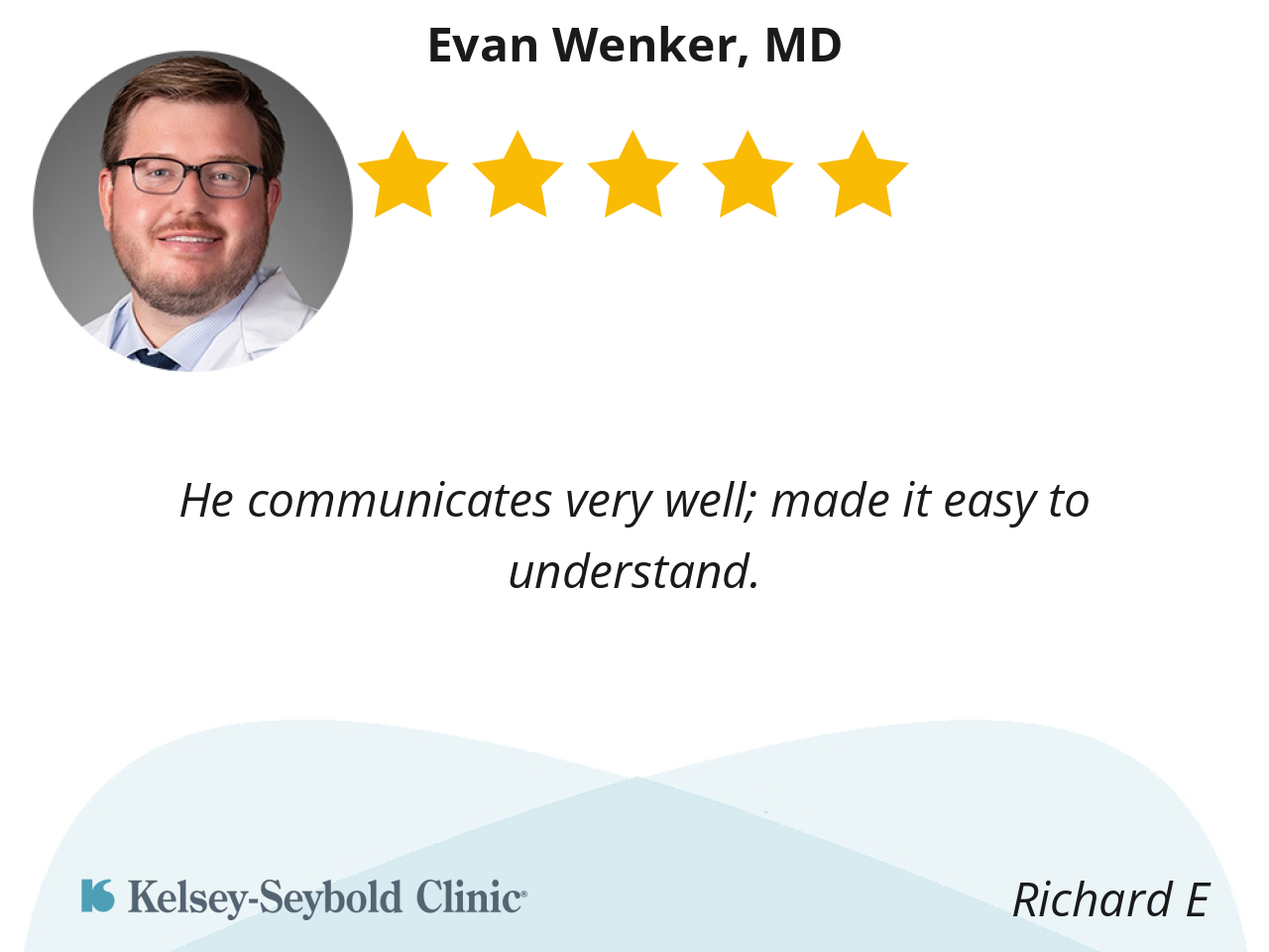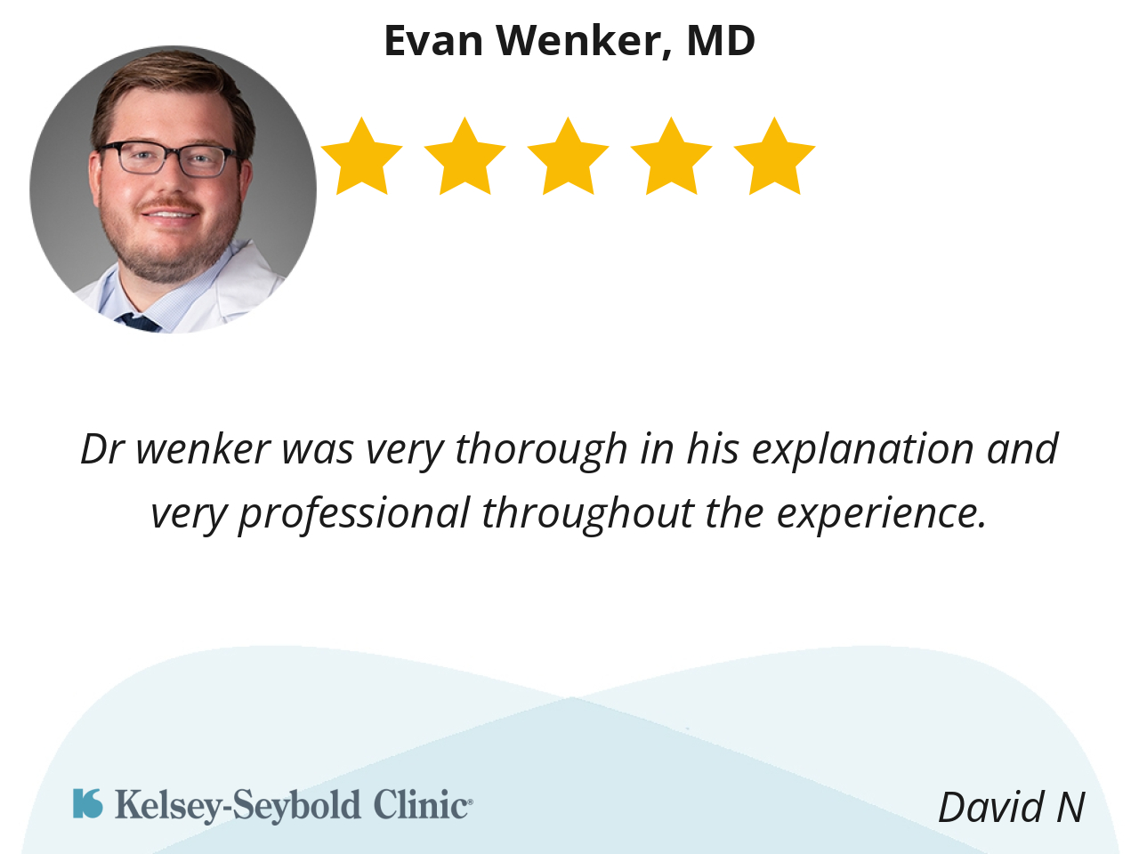 I feel safe and understood with Dr. Wenker. He takes the time to explain everything and never rushes me. He always asks if I have any further questions, which I really appreciate.