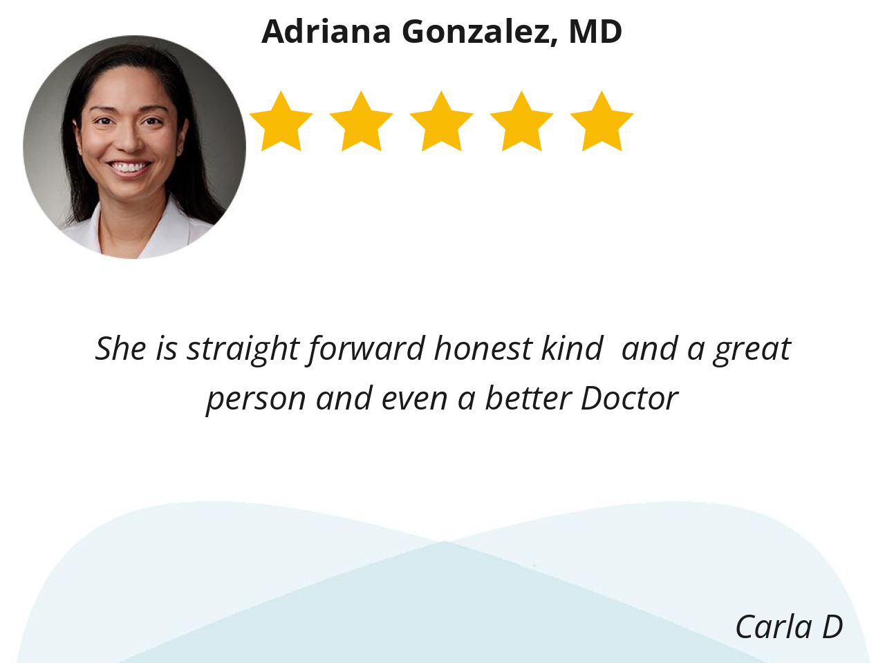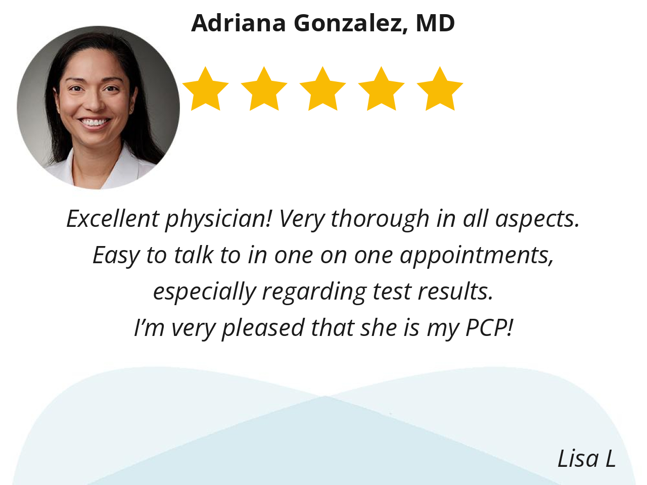 I chose Dr. Gonzalez because her patients rave about her care and abilities.... also she is a internist.
