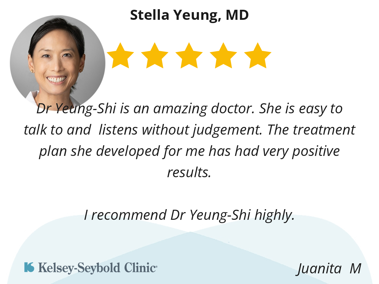 Dr Yeung-Shi is an amazing doctor. She is easy to talk to and listens without judgement. The treatment plan she developed for me has had very positive results.