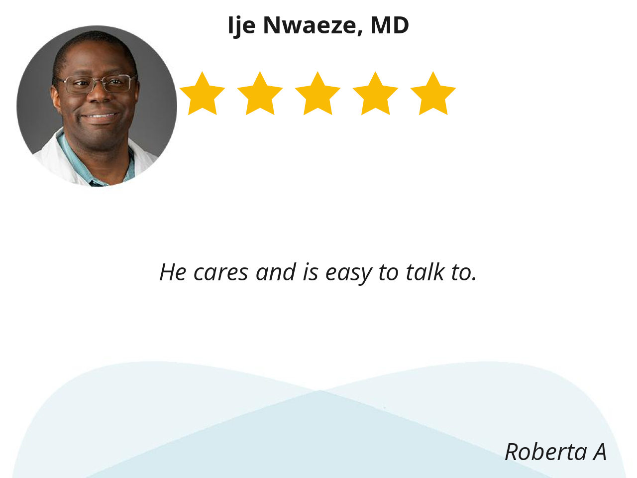 Listens to his patients as people not just another number. Is appreciative of his staff and works with them as a solid team. Has been the only Dr to take the time to help figure out a treatment plan and it worked.