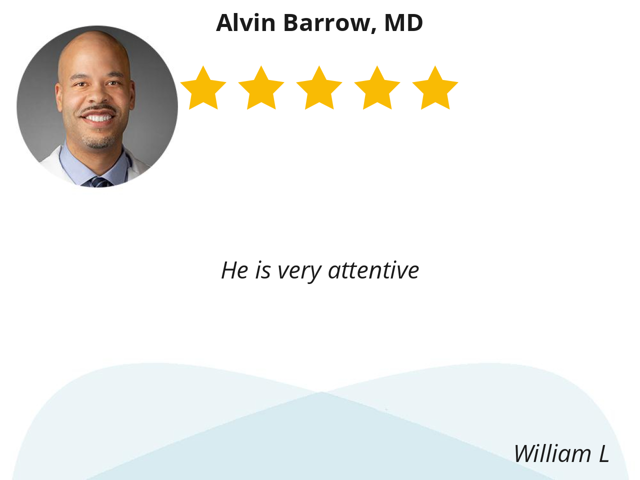 Dr Barrow go above and beyond, he leasing to the patient and giving time to explain, he shows he cares about the patient my husband and I been his patients for at long time also some my co-workers that I have recommended to Dr Barrow and they are very with him.Thank you Dr Barrow you are the best.