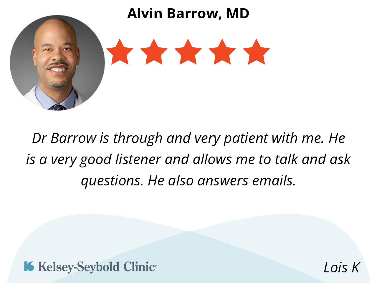 The reason I like Dr. Barrow is because he really cares about your health. And tries to make you feel very good about how we can fix the problems that I have. Caring is very important.